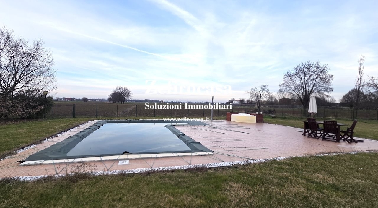 A pochi chilometri dal paese, in un contesto di assoluta tranquillità, proponiamo in vendita splendida villetta di testa edificata nel 2007, libera su tre lati, con ampio giardino privato e piscina interrata.nl'abitazione si sviluppa su due livelli. Al piano terra troviamo un luminoso salone di generose dimensioni con camino, cucina abitabile separata con adiacente dispensa, pratico antibagno e bagno finestrato con lavanderia, ripostiglio sottoscala, vano scala che conduce alla zona notte. Nal primo piano si apre un funzionale disimpegno che distribuisce tre ampie camere da letto e un secondo bagno, anch'esso di comoda metratura. Il tetto in legno a vista dona calore agli ambienti e un'atmosfera accogliente e raffinata.nesternamente la proprietà è circondata da un grande giardino privato, completa il quadro la piscina interrata di circa 68 metri, vero punto di forza per chi desidera vivere appieno gli spazi esterni nella stagione estiva.ndal punto di vista energetico e del comfort l'immobile è dotato di cappotto termico, infissi in pvc di recente sostituzione, tetto coibentato e ventilato che ne assicurano un ottimo isolamento termico e acustico, con conseguente risparmio sui consumi.nla villetta si trova in piena campagna, a circa 3 km dal centro abitato: una soluzione ideale per chi cerca pace, privacy e verde senza rinunciare ai servizi, raggiungibili in pochi minuti d'auto. Na disposizione 5 posti auto di proprietà.nper maggiori informazioni non esitate a contattarci in agenzia fisso: mobile: mail: