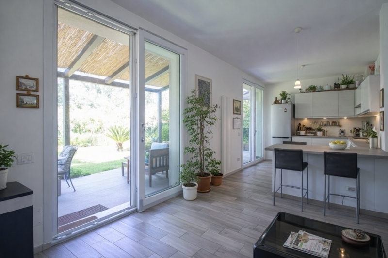 San lazzaro di savena - via zucchi - nuova costruzione anno 2018 in classe energetica a4, porzione di villa di testa mq 240 disposta su tre livelli con ampio giardino di proprietà mq 450. L'abitazione è composta al piano terra da ingresso su salone con cucina abitabile mq 46 e bagno finestrato; al primo piano disimpegno notte due camere da letto da 18 mq e 1 bagno finestrato da 11 mq (volendo è ricavabile la terza camera). Al piano interrato taverna finestrata con locale plurifunzionale, bagno e locale caldaia/cantina. Circostante l'abitazione giardino di proprietà in parte lastricato con pergolato, orto, alberi da frutto e accesso carrabile per posteggio fino a 2 auto. Internamente l'unità immobiliare dispone di pavimentazione in gres porcellanato, videocitofono, porta blindata, porte bianche pantografate e porte a scrigno, infissi in pvc triplo vetro, infissi scorrevoli antisfondamento in pvc triplo vetro con chiave, faretti, persiane in alluminio regolabili, scala di design, aria condizionata 5 split, addolcitore, pannello fotovoltaico 1,5 kilowatt, termo arredo, riscaldamento a pavimento, caldaia ibrida. Inoltre la casa viene venduta completa di arredo cucina con elettrodomestici, armadio camera matrimoniale, arredi bagni. Esternamente l'immobile dispone di cappotto termico e isolamento acustico. Classe energetica tra le più performanti a4. La proprietà è localizzata in una zona residenziale di case indipendenti e si trova a 1,4 km dal centro nova, a 400 mt da bar, a 1,5 km dal centro di san lazzaro, a 350 mt dalla fermata del bus 122 e a 500mt dall'ingresso della tangenziale/autostrada. Adatto a famiglie, ad unire genitori/figli. Classe energetica a4 ipe 31,54 termo autonomo. Richiesta € 599.000