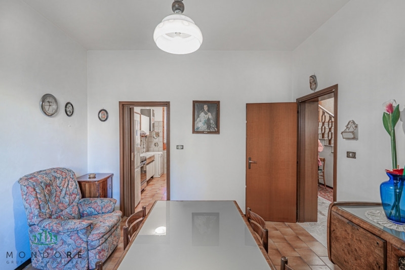 Proponiamo in vendita una tranquilla casa indipendente di 265 mq, situata in posizione comoda e a pochi passi da tutti i principali servizi.l'abitazione si sviluppa su due livelli con doppio ingresso indipendente.al piano terra si trovano un accogliente ingresso con disimpegno, un ampio e luminoso salotto con camino, la sala da pranzo, la cucina e un bagno.il primo piano ospita invece quattro camere da letto e un secondo bagno, ideali per garantire comfort e spazio a tutta la famiglia.a completare la proprietà, un ampio giardino privato â€" in parte piastrellato e in parte adibito ad orto â€" perfetto per momenti di relax all'aperto, due posti auto e locali cantina.se cerchi una casa indipendente comoda ai servizi, con la tranquillità di un'oasi verde tutta tua, questa è la soluzione perfetta per te!