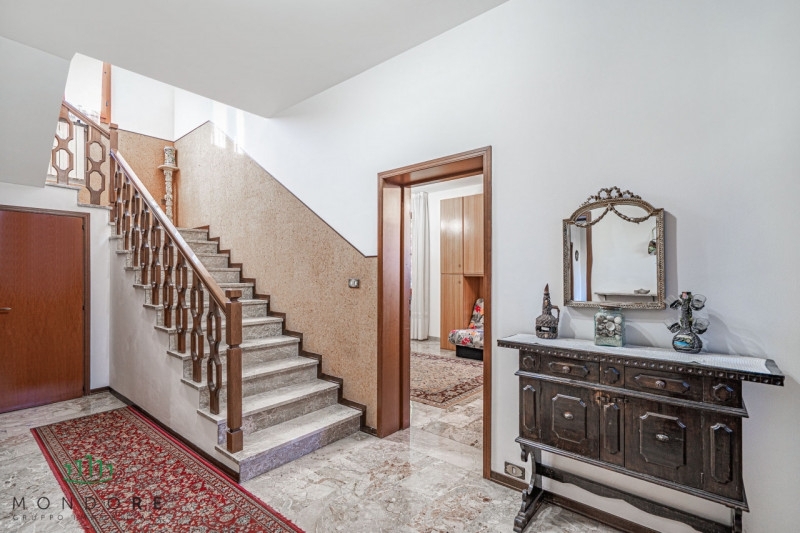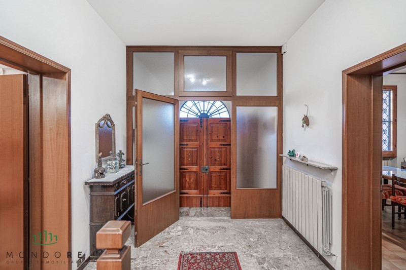Proponiamo in vendita una tranquilla casa indipendente di 265 mq, situata in posizione comoda e a pochi passi da tutti i principali servizi.l'abitazione si sviluppa su due livelli con doppio ingresso indipendente.al piano terra si trovano un accogliente ingresso con disimpegno, un ampio e luminoso salotto con camino, la sala da pranzo, la cucina e un bagno.il primo piano ospita invece quattro camere da letto e un secondo bagno, ideali per garantire comfort e spazio a tutta la famiglia.a completare la proprietà, un ampio giardino privato â€" in parte piastrellato e in parte adibito ad orto â€" perfetto per momenti di relax all'aperto, due posti auto e locali cantina.se cerchi una casa indipendente comoda ai servizi, con la tranquillità di un'oasi verde tutta tua, questa è la soluzione perfetta per te!
