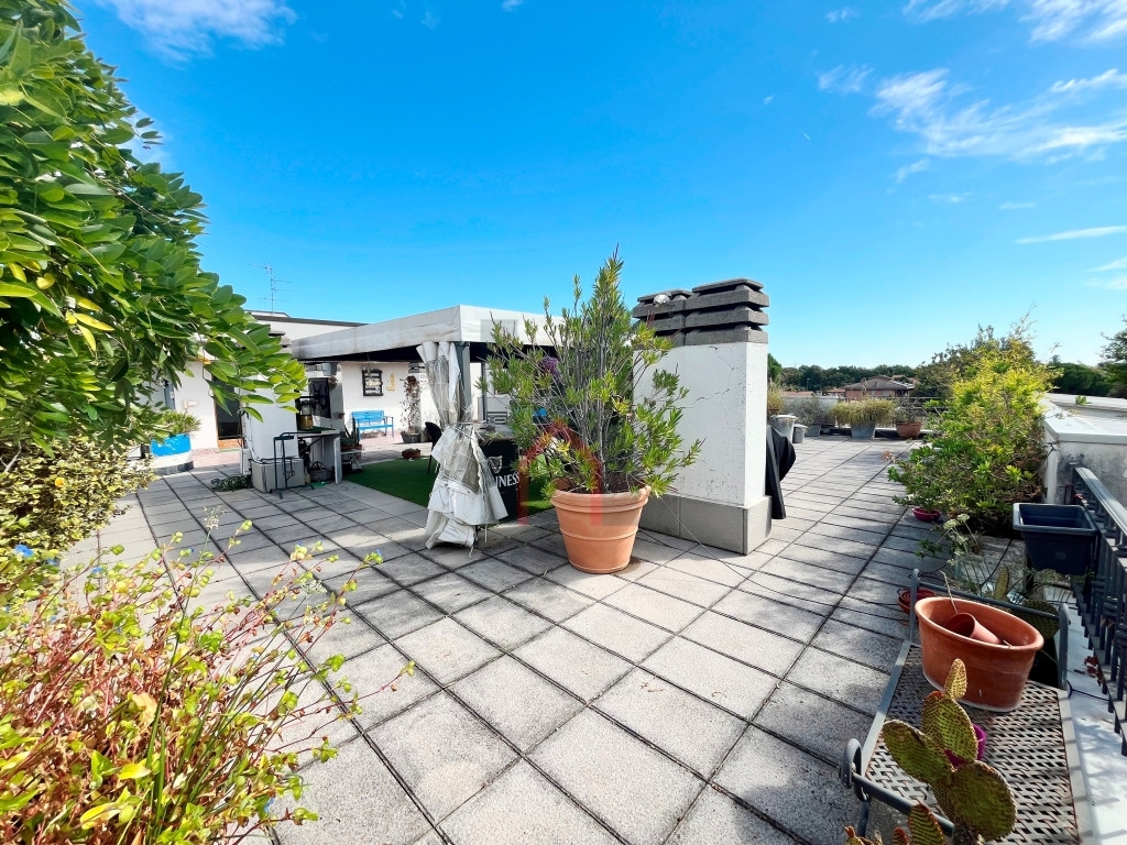 Romiti _ in posizione residenziale a pochi passi dal centro storico kleo immobiliare propone in vendita attico posto al quarto piano ed ultimo servito da ascensore con terrazza privata di 254 mq.immobile molto luminoso tenuto in buono stato e di 156 mq calpestabili ed è cosù composto:ampio ingresso con guardaroba, cucina abitabile, salone di 40 mq con camino, studio di 14 mq attualmente adibito come terza camera da letto,disimpegno notte, 2 bagni finestrati con lucernaio di cui uno con vasca idromassaggio e box doccia e l'altro con box doccia, 2 camere matrimoniali di cui una con accesso alla terrazza. due garage di proprietà e 2 posti auto ad uso esclusivo all'interno della corte condominiale.impianto autonomo, infissi in legno con doppio vetro, tapparelle, pavimenti in cotto zona giorno e paqrquet nella zona notte
