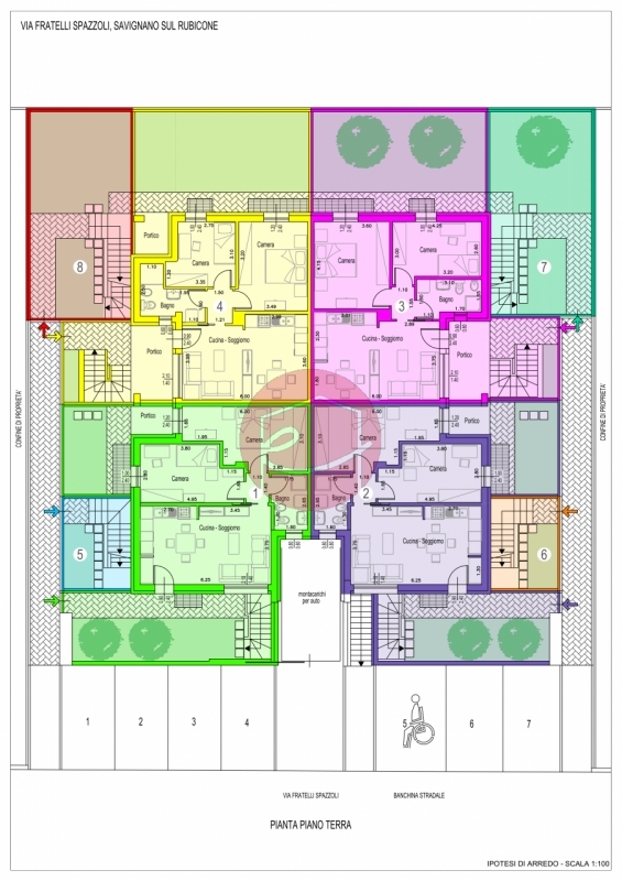 Savignano sul rubicone - in esclusiva, vendesi 8 appartamenti di nuova costruzione in classe a4, tutti con ingresso indipendente e giardino privato, in quartiere residenziale adiacente a tutti i principali servizi e a 3km dal casello autostradale valle del rubicone.il progetto prevede la costruzione di 8 appartamenti con abitazioni di tipologia trilocale al piano terra e quadrilocale al piano primo e sottotetto. Al piano interrato del fabbricato, accessibile tramite montacarico automatico, saranno ricavate le autorimesse per ogni abitazione. Il garage sarà accessibile in modo indipendente da ogni appartamento. Inoltre a servizio delle nuove abitazioni sarà realizzato un parcheggio pubblico.la tipologia al piano terra è composta da ingresso indipendente con giardino privato, angolo cottura e sala, camera matrimoniale con accesso al portico e corte privata, camera singola, bagno; dal giardino privato si accede al garage e ripostiglio.la tipologia al piano primo è composta da ingresso indipendente con giardino privato con scala indipendente che va al piano primo: angolo cottura e sala con ampio balcone, camera matrimoniale e camera singola con balcone, bagno, mansarda con tetto in legno con camera da letto matrimoniale, bagno, balcone e vano tecnico; dal giardino privato si accede al garage.il progetto si concentra sugli aspetti essenziali ed importanti ai fini del benessere abitativo, ovvero tutte le unità immobiliari hanno doppio o tripla esposizione, sono dotate di un elevato isolamento acustico e termico dell'involucro e dei serramenti, inoltre è previsto l'impiego di fonti di energia rinnovabile con generatore di calore a pompa di calore ed impianti fotovoltaici. Questo si traduce per l'utente finale in un risparmio importante dei consumi ed un ridotto impatto ambientale.consegna appartamenti fine 2026.prezzo a partire da 275.000,00 europer info: alberto