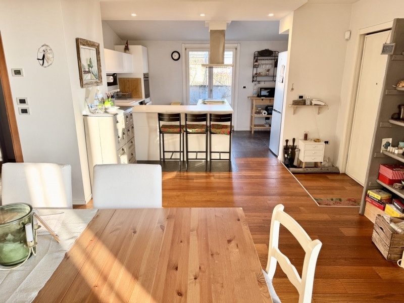 San secondo p.se: nel centro storico di san secondo parmense, attico completamente ristrutturato, che si estende su tutto l'ultimo piano dell'edificio, cosù composto:ampia zona giorno open space con cucina a vista, due camere da letto matrimoniali, stanza armadi con la possibilità di ricavare un ulteriore spazio abitativo o una terza camera da letto, due bagni e una comoda lavanderia.annesso balcone ed ampio terrazzo riservato.completano la proprietà una dependance con ingresso indipendente ed ulteriore terrazzo e garage.immobile termoautonomo e dotato di riscaldamento a pavimento e climatizzatore.