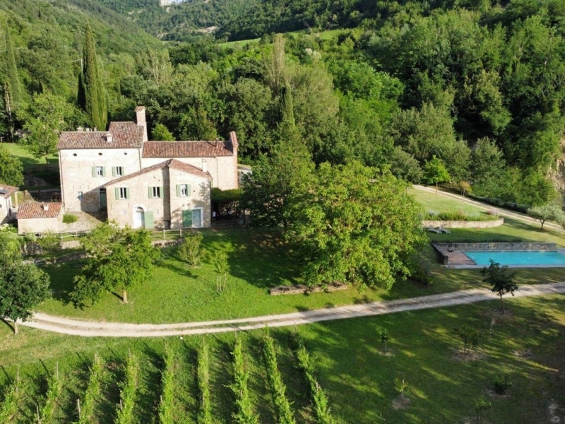La proprietà indipendente in oggetto si trova nel comune di brisighella, a 3 km circa dal centro abitato della frazione di fognano, a 5 minuti d'auto da tutti i servizi di prima necessità e dalla stazione dei treni.la proprietà si compone di un edifico principale, in pietra grezza e si sviluppa su vari livelli, nei quali troviamo ampie zone giorno, una cucina abitabile collegata con l'esterno su un bellissimo pergolato attrezzato, 4 camere da letto matrimoniali tutte con bagni privati, vari spazi adibiti a lavanderia, cantine e ripostigli.collegata all'abitazione principale, ma con ingresso separato, si trova una piccola dependance composta da camera matrimoniale, angolo cottura e bagno.il salone di rappresentanza, di circa 70 mq, si trova nella ex chiesa ed è stato finemente arredato ed assortito con un camino di grande impatto visivo.separati dall'abitazione principale si trovano un forno a legno e altri edifici di ampie dimensioni al momento utilizzati come zona fitness e hobbies, garage triplo con basculanti motorizzate, ed un fabbricato in uso come zona studio, con bagno e vano tecnico, con i 2 vani principali utilizzabili senza problema come ulteriori camere.ogni ambiente è curato nei minimi dettagli, con una forte attenzione al recupero dei materiali originali (travi in legno, pietra grezza e mattoni) per consentire alla proprietà di conservare il suo aspetto storico: la proprietà difatti è stata edificata nel 1500 circa.l'area circostante l'abitazione è costituita da un parco di circa mq.7500 ben curato e piantumato, nel quale si trova una piscina in ottime condizioni, e da un vigneto di circa mq. 10.000.il casale si presta perfettamente sia all'uso come abitazione privata o come seconda casa, che come struttura ricettiva/agriturismo, potendo contare fino a 6 camere con bagno privato da proporre a potenziali clienti i quali potranno sfruttare i servizi come cucina all'aperto e piscina in tutto il periodo estivo.