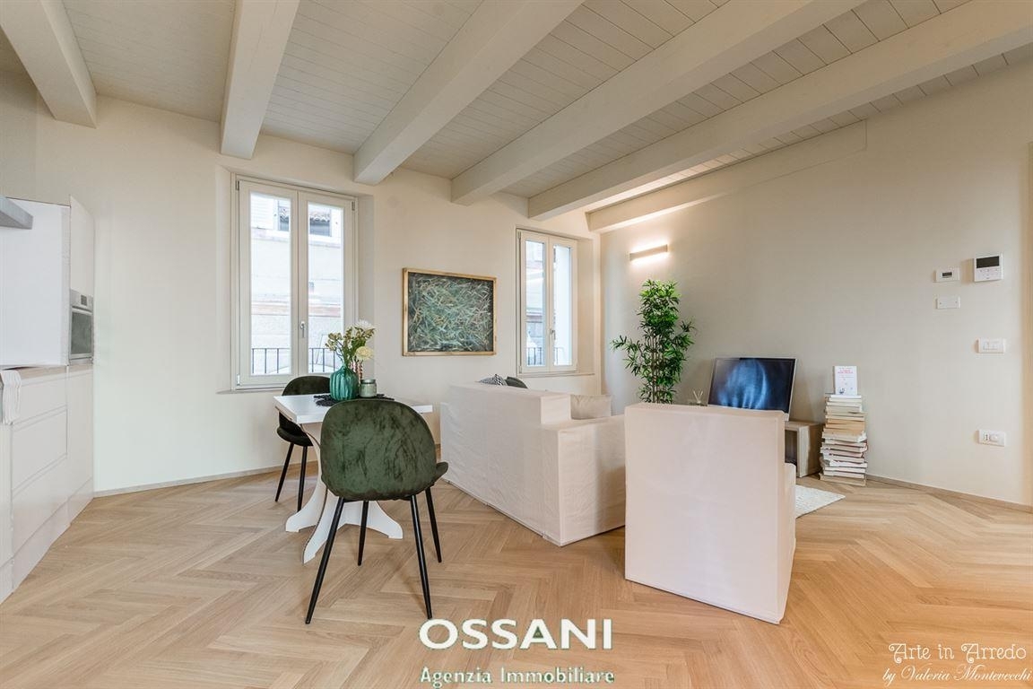 Faenza - centro storico - all'interno di un contesto completamente ristrutturato e valorizzato da finiture di alto livello, proponiamo in vendita questo luminoso appartamento pronto per essere abitato. L'ingresso si apre su un accogliente soggiorno con cucina a vista, e si affaccia su un ampio terrazzo di 22 mq. Allo stesso terrazzo si accede anche dal disimpegno notte e dalla camera singola., garantendo luce naturale in tutti gli ambienti. La zona notte è composta da una spaziosa camera matrimoniale, camera singola e da un bagno finestrato. Completa la proprietà una comoda cantina al piano sottostrada, oltre a deposito comune per bici. Consegna immediata. Possibilità di posto auto in affitto nelle vicinanze. Cl. En. 'a2'.richiesta euro 310.000,00