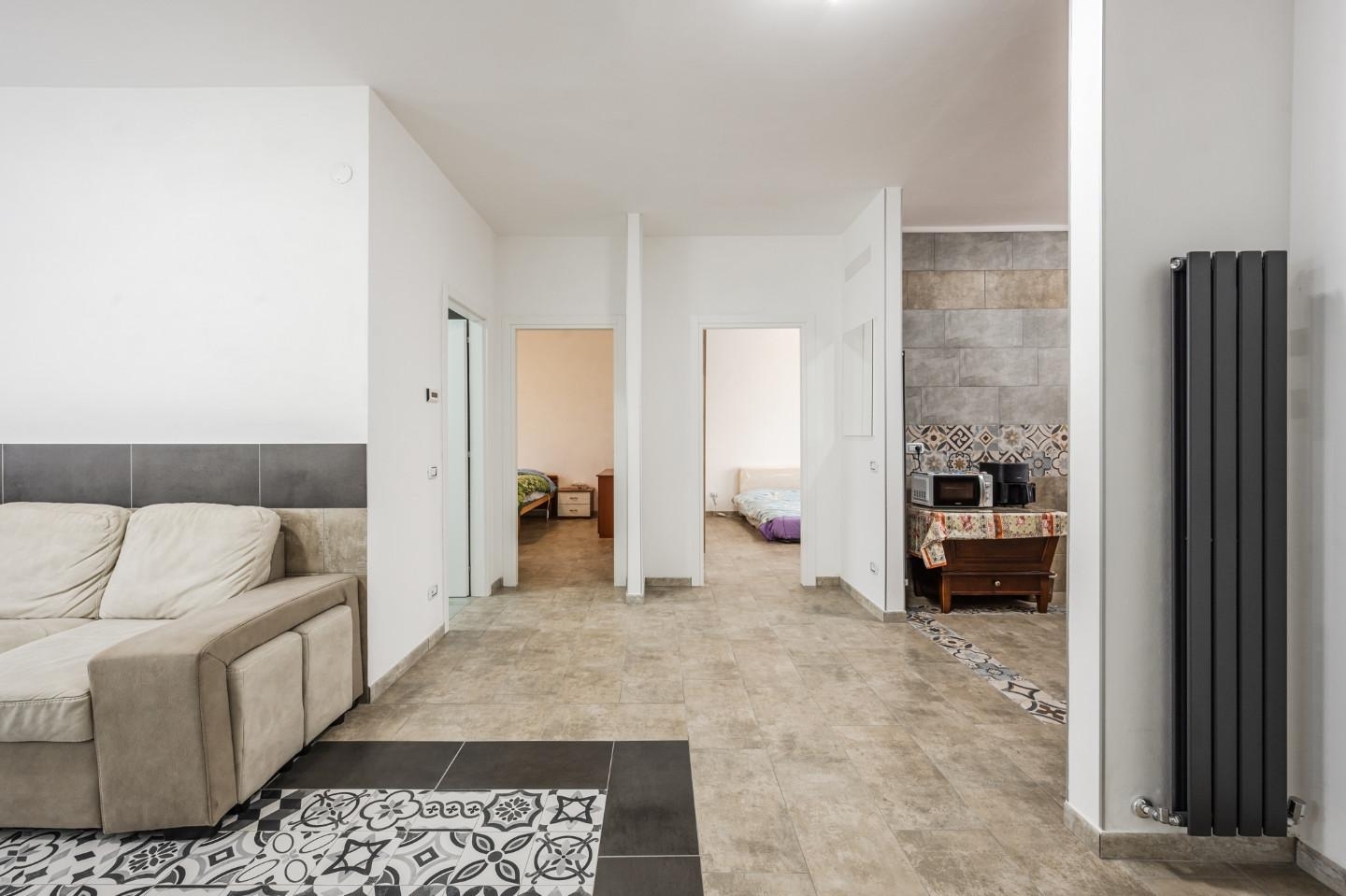 Rif: hrea - 009 - nostra esclusiva - prenota il tuo appuntamento al prossimo open houseluminoso trilocale ristrutturato con garagehomesy propone in vendita ampio appartamento completamente ristrutturato al secondo ed ultimo piano, con cantina e garage di 16mq a parte ad euro 15.000. interno: l'ingresso si apre su una zona giorno luminosa e ben organizzata, con una sala ampia e separata dalla cucina abitabile, ideale per chi ama cucinare e desidera uno spazio dedicato ai pasti in famiglia. La zona notte è composta da due grandi camere matrimoniali, entrambe spaziose e confortevoli, perfette per garantire il massimo del relax. Il bagno, recentemente rinnovato, è moderno e funzionale. Tutti gli impianti sono stati rifatti, e l'appartamento è dotato di termoarredo, infissi interni ed esterni completamente nuovi, completi di zanzariere e tapparelle nuove, a garanzia di comfort e isolamento. Inoltre, l'immobile è libero e non è mai stato abitato dopo la ristrutturazione, rappresentando quindi una vera opportunità per chi cerca il nuovo in un contesto già esistente. è presente uno sgabuzzino con attacco per la lavatrice, perfetto per ottimizzare gli spazi domestici. L'immobile è dotato di predisposizione per tre split di aria condizionata, offrendo cosù la possibilità di personalizzare il comfort climatico secondo le proprie esigenze. Completa la proprietà un comodo garage, ideale per parcheggiare l'auto o da utilizzare come spazio aggiuntivo per il deposito, oltre a una cantina per ulteriore praticità. esterno: in giardino, è inoltre presente un piccolo appezzamento di terra, perfetto per chi desidera coltivare un orto. perche' acquistare l'immobile: -basse spese condominiali -posizione vicina ai servizi principali -ottima disposizione degli spazi interni -ampia metratura -zona residenziale e tranquilla l'appartamento è la soluzione ideale per chi desidera vivere in un contesto tranquillo senza rinunciare alla comodità dei servizi, tutti facilmente raggiungibili a piedi. per maggiori informazioni o per fissare una visita, contattaci!