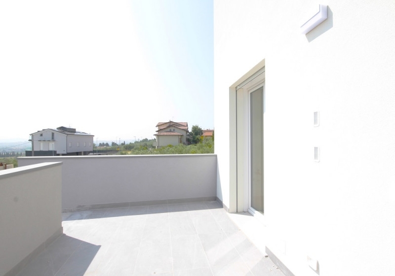 A misano in stupenda posizione panoramica.appartamento sito a piano primo con sotto tetto di nuova costruzione di sole 4 unità immobiliari.realizzata in classe energetica a a norma con l'ultima legge anti sismica.dalla scala esterna privata raggiungiamo il comodo terrazzo con vista mare e l'ingresso.il piano primo si presenta con un ampio openspace con cucina a vista, 1 camera matrimoniale e 1 bagno.il sotto tetto con altezze comode è suddiviso in 2 camere da letto, bagno finestrato e ampio ripostiglio.a piano terra 2 posti auto privati con possibilità di essere coperti con pergola. cantina di oltre 10 m e piccola corte.