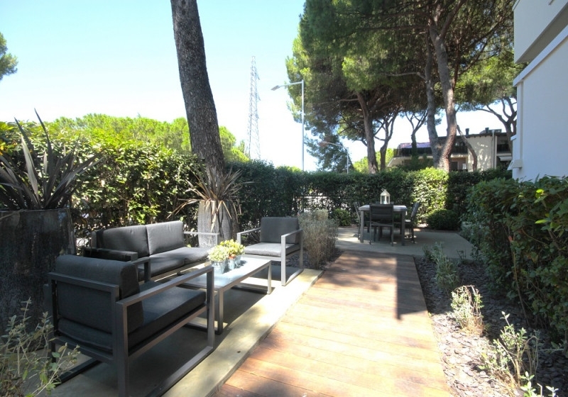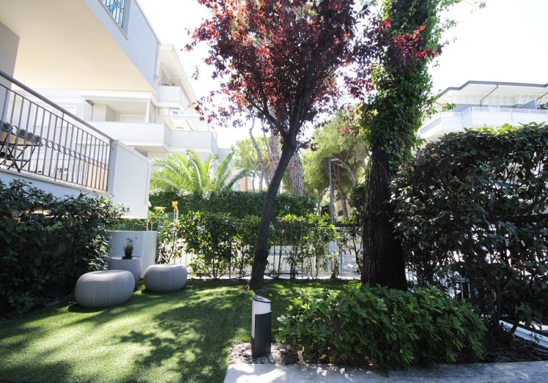 Riccione paese 700 metri dal mare in zona molto comoda e servita.splendido appartamento di recente e totale ristrutturazione dove un'attenta riorganizzazione degli spazi ha permesso di massimizzare la funzionalità degli ambienti e la combinazione di illuminazione naturale e artificiale crea un'atmosfera luminosa e accogliente.sito al piano rialzato di palazzina da 8 unità immobiliari mantiene una sua indipendenza trovandosi libero su 3 lati.ingresso privato dal giardino esclusivo piantumato e in parte pavimentato.luminosa e spaziosa zona soggiorno con cucina di pregio abitabile, separata da porta a vetro scorrevole con piano induzione, 5 fornelli a gas, griglia a piano.la zona notte si compone di camera padronale con bagno in camera con doccia 'walk in', camera doppia e cameretta. secondo bagno con vasca da bagno con illuminazione led e cascata. Ripostiglio e lavanderia che collegano l'appartamento al garage doppio con 2 basculanti elettriche e alla cantina. I balconi che corrono sui 3 lati sono comodi e abitabili.gli arredi su misura sono inclusi nel prezzo cosù come riscaldamento a pavimento, pannelli solari per acqua calda, infissi in legno e pvc con doppio vetro e pavimenti in legno, porta blindata, impianto di aspirazione a muro, aria condizionata canalizzata, allarme, termo camino a legna, vcm nella camera padronale, zanzariere, tapparelle elettriche, impianto d'allarme e domotica.