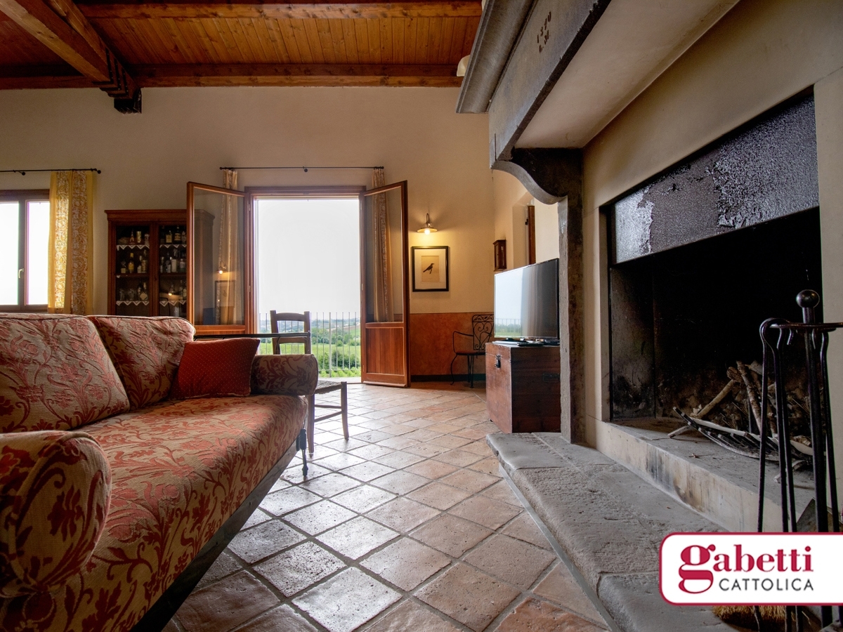 In esclusiva! san giovanni in marignano in zona tranquilla e riservata, immersa nel verde, proponiamo splendido casale con fantastica vista su vigneti e uliveti. la proprietà è composta da ampia zona giorno con imponente camino che primeggia nella sala, bagno, ripostiglio e cucina abitabile. Deposito attrezzi e garage al piano interrato. la proprietà è circondata da oltre 4 ettari di terreno di cui 2 ettari di vigneto, oltre uliveto e orto.maggiori info in agenzia. C. E. In richiesta. Rif. V163