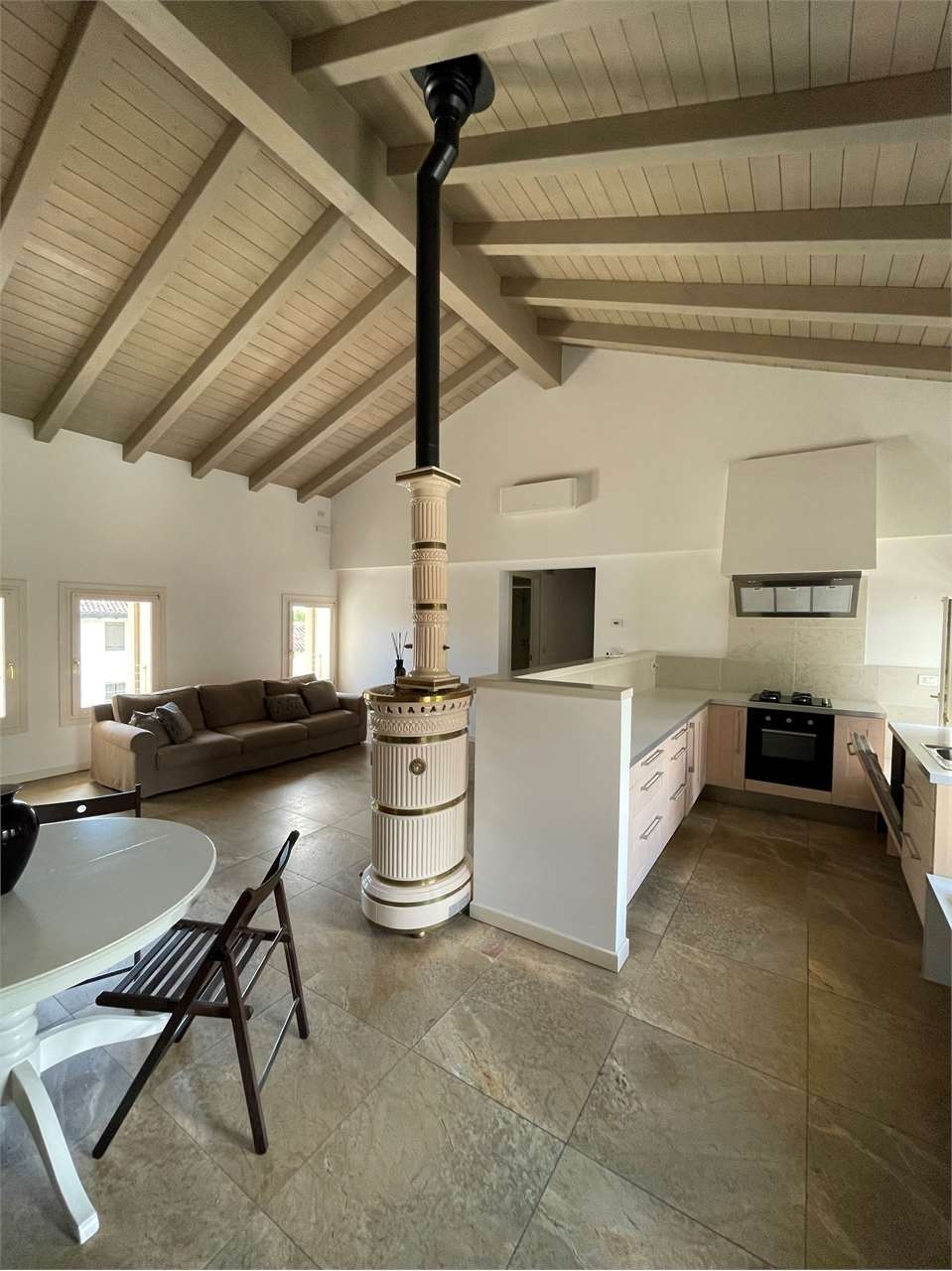 Mansarda tricamere del 2009.pari al nuovo poichè abitato pochissimo.l'appartamento al piano 2° servito da ascensore, apre su una zona giorno aperta, luminosissima, con angolo cottura a vista e canna fumaria per caminetto;la zona notte si compone di con due camere matrimoniali e una cameretta/studio con soppalco.doppio bagno con doccia, uno a servizio della camera principale.le finiture sono particolari, ricercate, un pò fuori dal comune come i pavimenti e i bagni in pregiato marmo naturale.garage singolo al piano interrato e ampio spazio di parcheggio esterno in proprietà.l'appartamento è termoautonomo con propria caldaia che alimenta l'impianto a pavimento, la climatizzazione estiva tramite 3 split.contesto molto tranquillo e riservato.classe energetica: b 115,17 kwh/m3 a