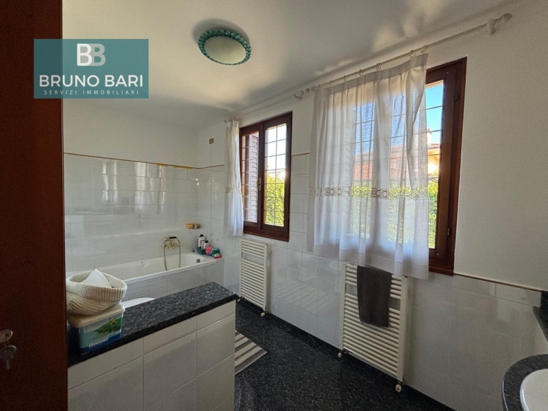In zona residenziale riservata e silenziona posta in strada a fondo chiuso, proponiamo villa degli anni '90 che unisce la tradizione al confort.la casa offre spazi comodi per chi cerca stanze ampie ben organizzate e funzionali.al piano terra tramite un ampio portico di 40 mq ca si accede al soggiorno di generose dimensioni da qui passiamo alla cucina abitabile con cucinino separato oltre a un comodo bagno due camere matrimoniali e due pratici ripostigli.salendo al primo piano troviamo una camera padronale, un bagno ed uno studio; da qui si accede ad una soffitta utilizzabile come deposito.al piano seminterrato troviamo una lavanderia, centrale termica, depositi vari e una spaziosa taverna ideale per ogni occasione conviviale.esternamente completa la proprietà un giardino di generose dimensioni che ci regala riservatezza e spazio verde e relax.la villa è dotata di impianto fotovoltaico da 6 kw, impianto di allarme, aspirazione centralizzata, riscaldamento a pavimento e climatizzazione con pompa di calore.recentemente la casa ha subito interventi di manutenzione tra cui la tinteggiatura completa sia esterna che interna, il rifacimento della copertura, la riverniciatura delle travi esterne in legno del tetto mentre le finiture interne conferiscono alla casa calore e fascino.questa soluzione è un opportunità per chi cerca una casa con spazi funzionali abitabile da subito, senza interventi da dover tenere in considerazione, completa il tutto la comodità della posizione infatti siamo vicini a tutti i servizi principali !!chiamaci per ulteriori dettagli.