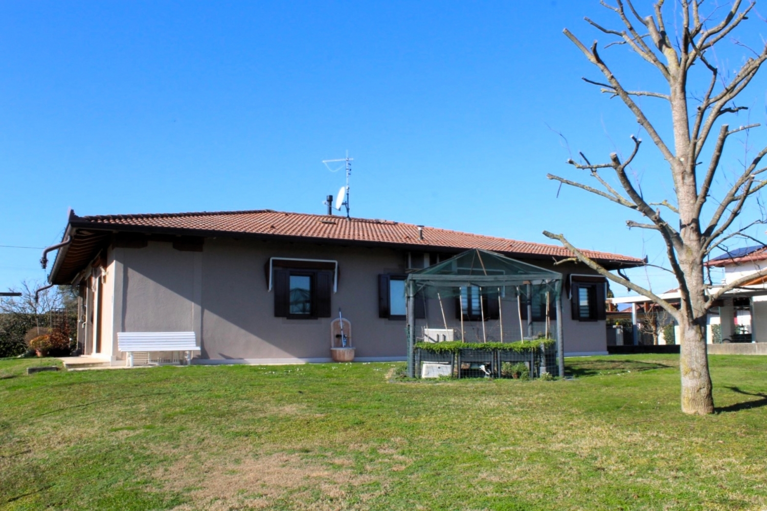 porcia - fraz. Rondover. Bellissima villa singola edificata nel 2001 di 150 mq calpestabili , l' abitazione si sviluppa su un unico piano e sorge su un lotto di circa 1250mq. L' immobile è composto dal patio d' ingresso, il disimpegno giorno conduce alla cucina vivibile e al soggiorno con zona pranzo ed è completata dal bagno di servizio, la zona notte è composta da una camera matrimoniale e due camere singole oltre al bagno principale. Annessi all' immobile ci sono poi la lavanderia , ripostiglio e cantinetta. All esterno giardino piantumato e posto auto doppio. impianto fotovoltaico da 5 kw , stufa a pellet , impianti d'allarme. Ape classe a2 € 325.000