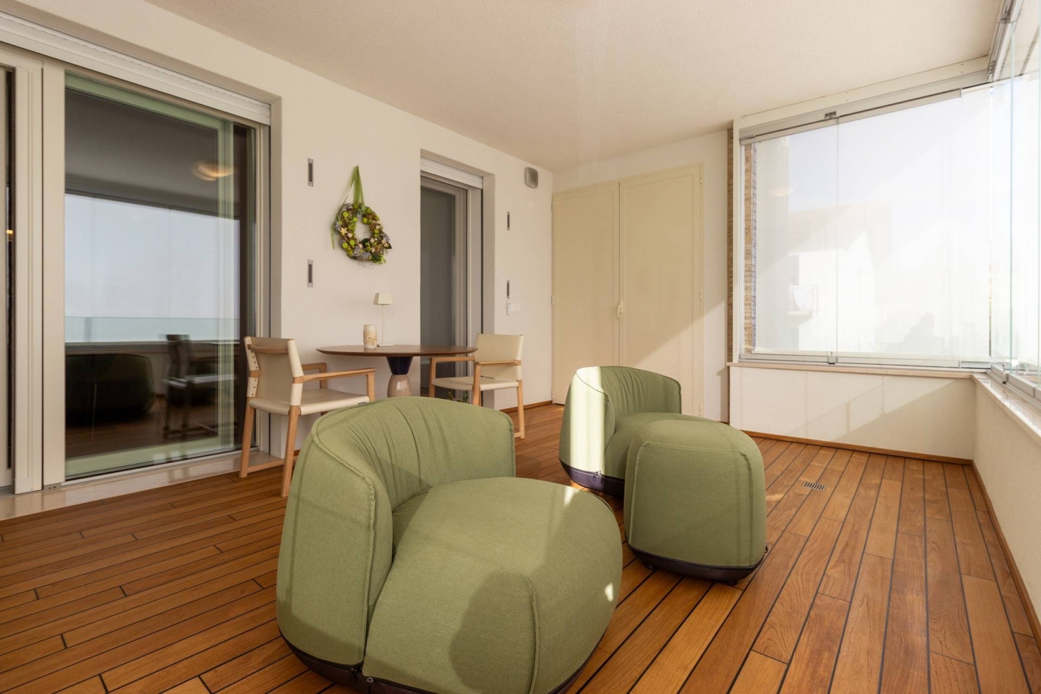 Vendesi appartamento di pregio completamente arredato ed accessoriato pronto per essere abitato da subito!!!in zona centrale a sacile si propone in vendita un appartamento di recentissima costruzione finito ed accessoriato con elementi e mobili di estremo pregio ad un prezzo eccezionale!l'immobile, all'interno di un residence privato, è sito al primo piano ed è servito da ascensore. Presenta una metratura di mq. 123 e si sviluppa in: ingresso, zona giorno con cucina/soggiorno e sala da pranzo openspace con accesso diretto alla comoda terrazza di mq. 22 (resa un'estensione della zona giorno grazie all'intelligente chiusura tramite vetrate mobili che la rendono fruibile in qualsiasi stagione) e completa di vano tecnico ad uso lavanderia, disimpegno notte, 2 camere singole di cui una con accesso al terrazzo e 2 bagni entrambi finestrati con doccia di cui uno dedicato alla camera matrimoniale. Il tutto è completato da garage di mq. 35 con cantina di mq. 7 all'interno dello stesso e posto auto esterno assegnato. L'immobile è in classe energetica a4 e presenta cappotto, infissi in legno con tripli vetri, il pavimento è in legno con riscaldamento a pavimento centralizzato con caldaia a pompa di calore funzionante con impianto fotovoltaico, impianto dell'aria condizionata sia per la zona giorno che per la zona notte, impianto di ventilazione meccanica, tapparelle elettriche, portoncino blindato, impianto di allarme e video citofono. Le spese condominiali sono comprensive di tutto ad esclusione della corrente personale.occasione imperdibile per chi cerca un appartamento nuovo e di prestigio da vivere da subito!