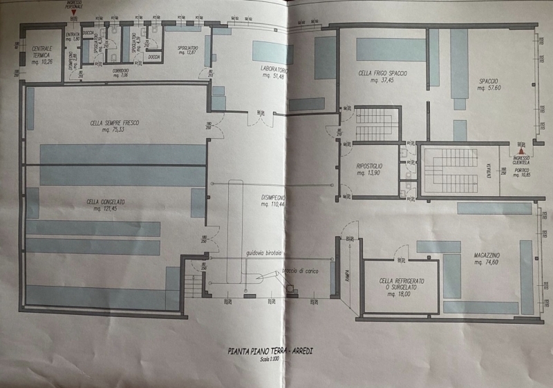 Capannone indipendente con celle frigo e area scoperta di 5.000 mq nella zona industriale di fagagna. Immobile ideale per attività alimentari o logistiche, composto al piano terra da circa 250 mq di celle frigorifere monopanel piastrellate, laboratori di lavorazione, zona vendita commerciale, doppi spogliatoi maschili e femminili e tre bocche di carico/scarico merci per la logistica. Al primo piano uffici direzionali con reception, ambienti luminosi e cablati, servizi igienici maschili e femminili, oltre ad ulteriori magazzini serviti da montacarichi, area server dedicata e centrale termica. Completa la proprietà un ampio scoperto di circa 5.000 mq con parcheggi, ampia area di manovra per mezzi pesanti e zona rifornimento dotata di cisterna interrata per gasolio da 3.000 litri.metrature: 700mq di piano terra, 300mq di piano primo, 5.000mq di scoperto, 250mq di celle frigo, altezza piano terra zona carico scarico 6,35m;caratteristiche: capannone indipendente, impianti a norma, celle frigo con monopanel, laboratori a norma cee, uffici cablati e area server, area rifornimento e bocche di carico e scaricoape in classe e classe energetica = e