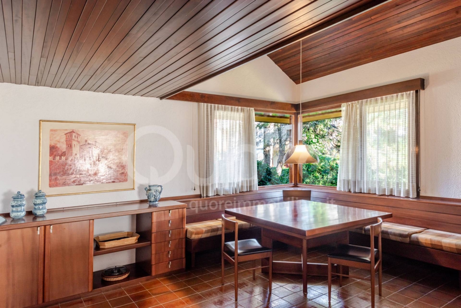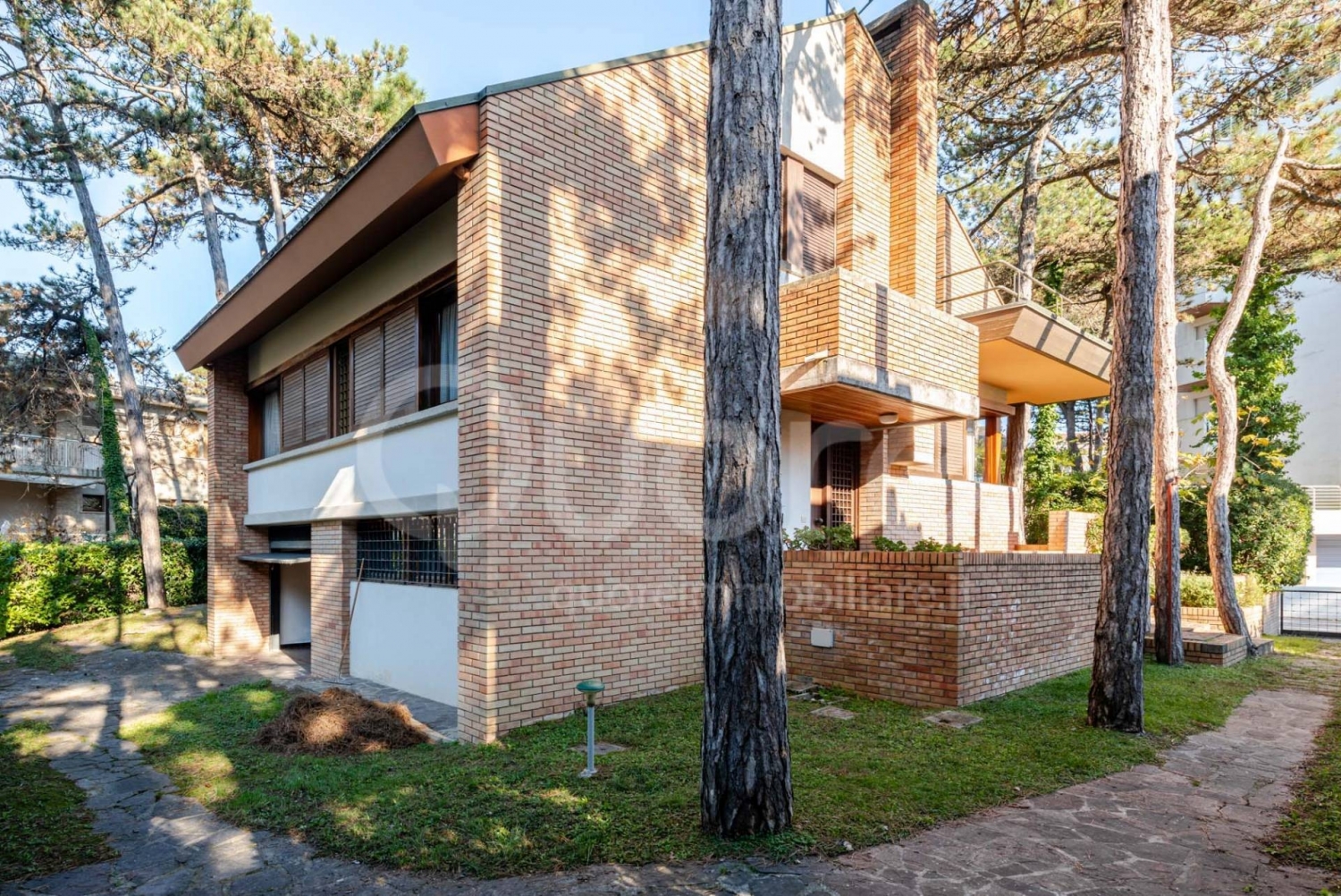 Lignano pineta a soli 100 metri dal mare, in una delle zone più esclusive di lignano pineta, circondata dalle prestigiose architetture di d'olivo, avon e bernardis, questa splendida villa singola di 300 mq con giardino rappresenta la sintesi perfetta tra eleganza, stile e comfort abitativo. La villa si sviluppa su tre livelli. Al piano terra troviamo una splendida zona living di generose dimensioni, composta da cucina separata, salotto e zona pranzo, con accesso al patio esterno. Completano il piano una camera da letto, uno studio e un bagno finestrato. Il piano superiore ospita quattro ampie camere da letto e doppi servizi. Al piano seminterrato trovano spazio un box auto doppio, un ulteriore bagno di servizio e diversi vani accessori. L'immobile è impreziosito da ampie vetrate con affaccio sul giardino, creando una perfetta continuità tra gli spazi interni ed esterni. I raffinati rivestimenti in legno, l'arredo su misura e il calore del caminetto a legna creano un'atmosfera accogliente e senza tempo. Il rivestimento esterno in mattoni faccia a vista e i dettagli architettonici originali richiamano il fascino autentico dell'epoca in cui lignano pineta si è arricchita di eleganti ville singole di pregio, testimoni di uno stile esclusivo e ricercato.
