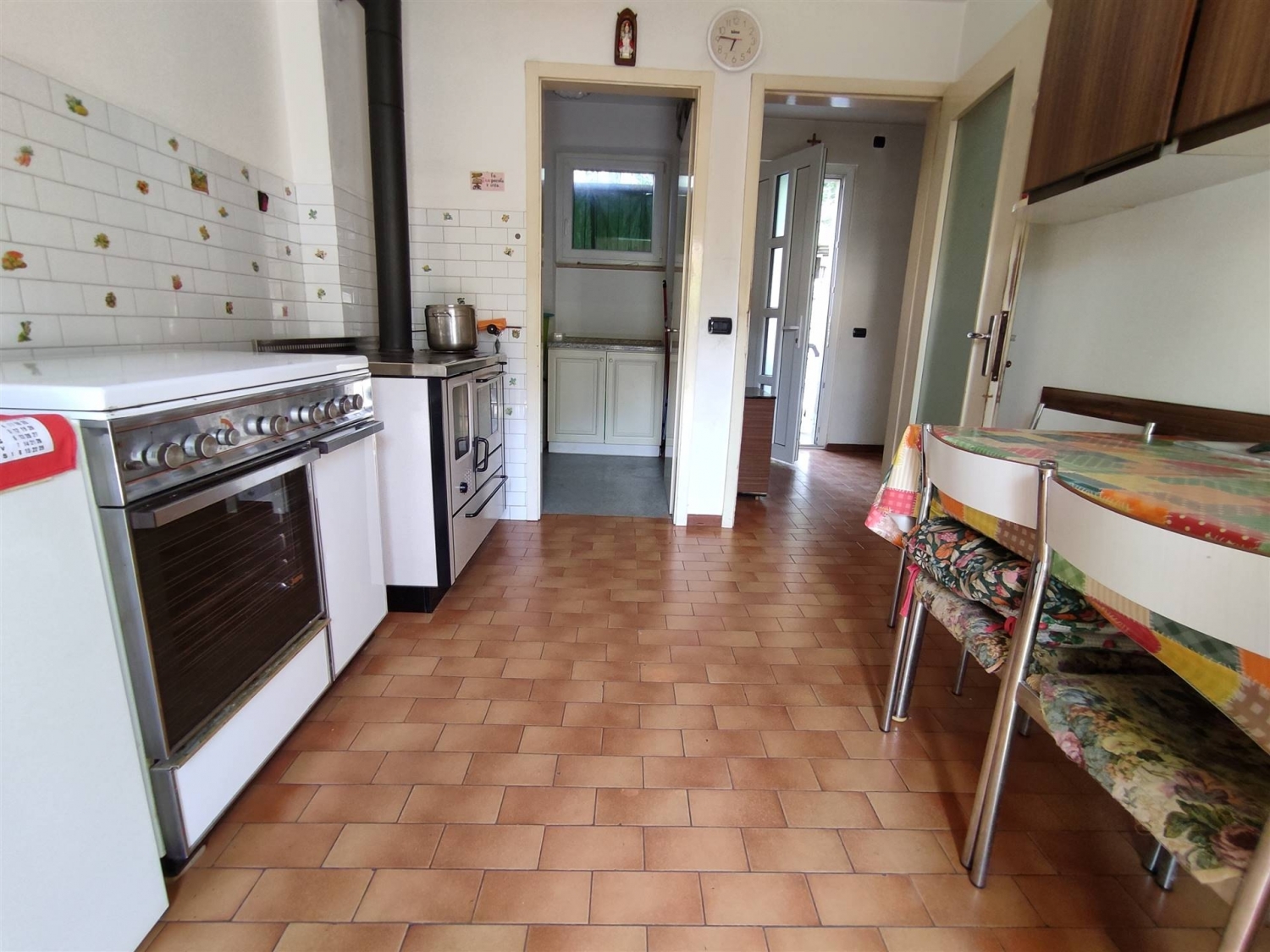 Villetta a schiera di testa, in zona tranquilla ma vicina al centro di pontebba.l'edificio si trova in un complesso, all'interno di ampia corte in comproprietà.ha un piccolo giardino privato soleggiato e doppio ingresso.al piano terra (leggermente rialzato) ci sono atrio, cucina, soggiorno, loggia sul giardino e ripostiglio.al primo piano tre camere di cui una con terrazzino. Bagno al piano inframezzo.serramenti nuovi doppio vetro, impianto di riscaldamento autonomo con caldaia recente.pavimenti in legno nelle camere, piastrelle nei locali zona giorno. Con canna fumaria e spoler.garage esterno da sistemare. Classe energetica: g