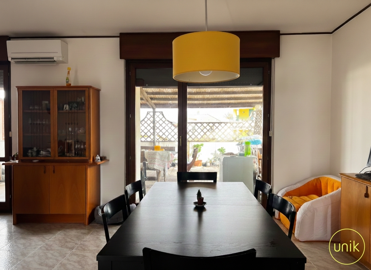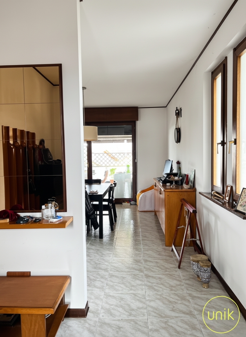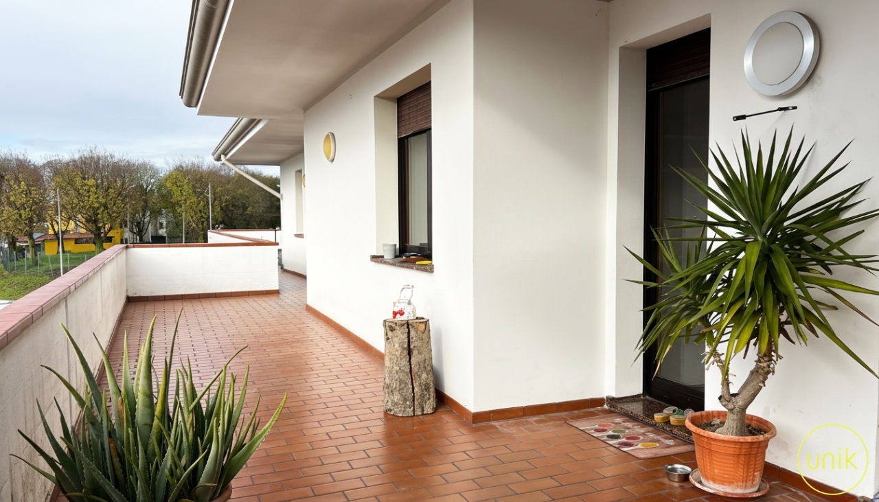 a pradamano, in via chino ermacora, inserito in un tranquillo contesto residenziale, ben servito da scuole e impianti sportivi e che dista solo cinque minuti da udine, proponiamo in bifamiliare un appartamento di 150 mq situato al primo piano. L’edificio è composto da un magazzino al piano terra, non oggetto di vendita, e dall’abitazione al livello superiore, offrendo così la piacevole sensazione di vivere in un contesto e ingresso indipendente. L’immobile si sviluppa su livello unico e si compone di ingresso, soggiorno con caminetto e per chi ama cucinare una spaziosa cucina a propria disposizione. La zona giorno si apre su una terrazza di 200 mq, ideale da attrezzare con zona pranzo esterna, salottino outdoor o area relax, offrendo uno spazio comodo e funzionale per vivere l’esterno con praticità. La zona notte ospita le tre camere da letto, di cui una padronale con il proprio bagno, e un bagno di servizio. Si presenta in buone condizioni generali, anche se alcuni interventi di ammodernamento potrebbero restituirgli il suo potenziale. A completamento della proprietà si trovano una pratica cantina e un posto auto.