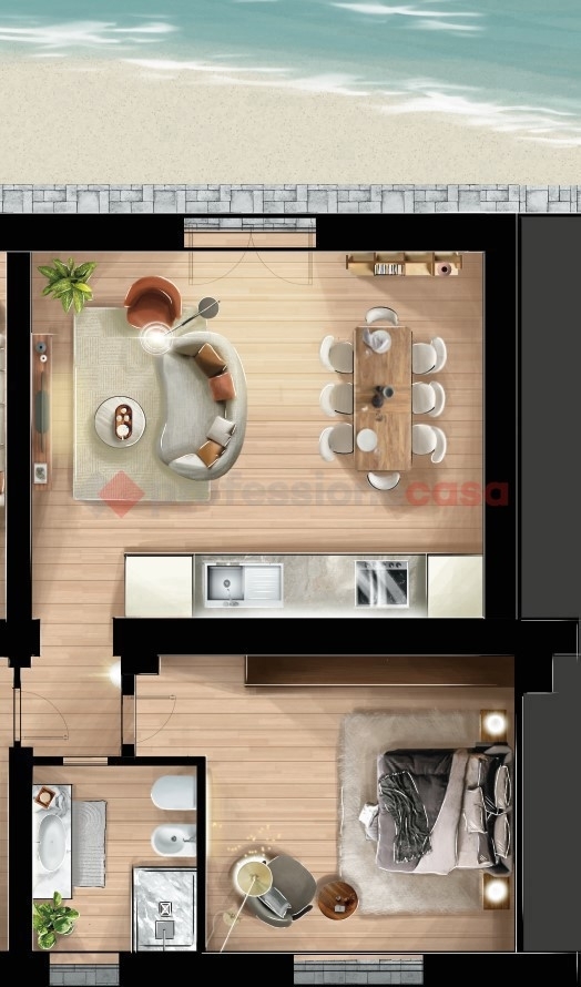 Marina di ardea - appartamento fronte mare al piano terra con entrata semi indipendente: soggiorno con angolo cottura, disimpegno, camera e bagno con doccia finestrato. L'immobile si trova di fronte alla fermata cotral, linea roma laurentina/nettuno, vicino a ristoranti, hotel, bar, pub e ai principali servizi, e a circa 4,5 km da banca, posta e farmacia. L'immobile sarà consegnato ristrutturato entro giugno 2026.