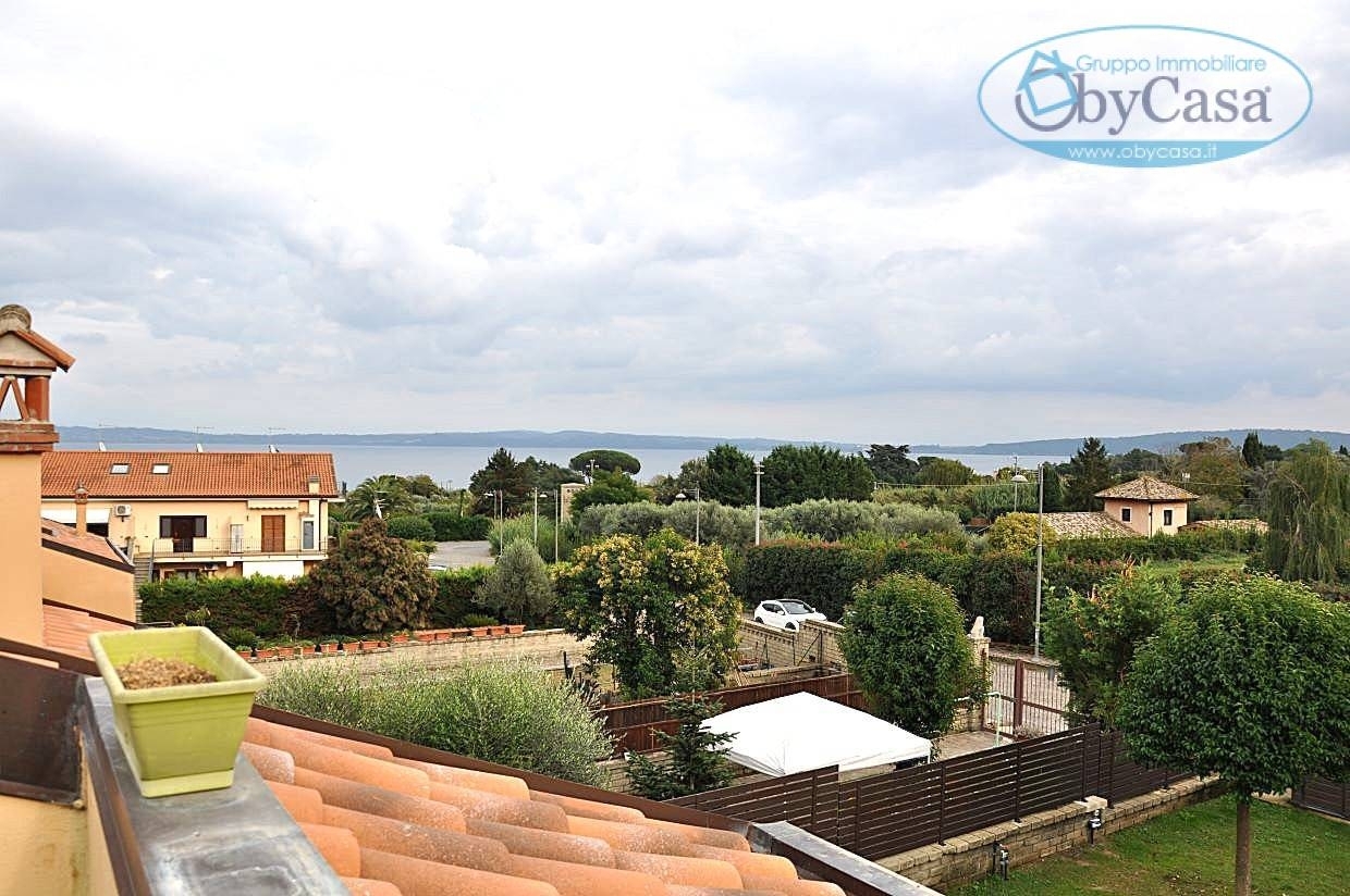 Bracciano, agenzia immobiliare obycasa propone in vendita, villetta a schiera, porzione angolare, situata nella zona del lago, è una vera e propria oasi di tranquillità e relax.lo stato attuale della proprietà è libero al rogito, pronto ad accogliere i suoi nuovi proprietari.con una superficie di circa 180 mq. La casa si sviluppa su 3 livelli e offre comodi spazi luminosi.l'immobile è cosi composto: al piano terra troviamo una zona pranzo con cucina a vista, 2 camere, bagno, il portico all'ingresso e uno con uscita dalla cucina; al piano primo 2 comode camere mansardate, di cui una con uscita su un terrazzino e bagno; al piano seminterrato una sala hobby, bagno e garage.inoltre, dispone di un giardino privato di circa 250 mq., dove è possibile organizzare cene all'aperto o semplicemente rilassarsi al sole.la villetta si trova in ottimo stato di manutenzione con una ottima esposizione.panoramica.
