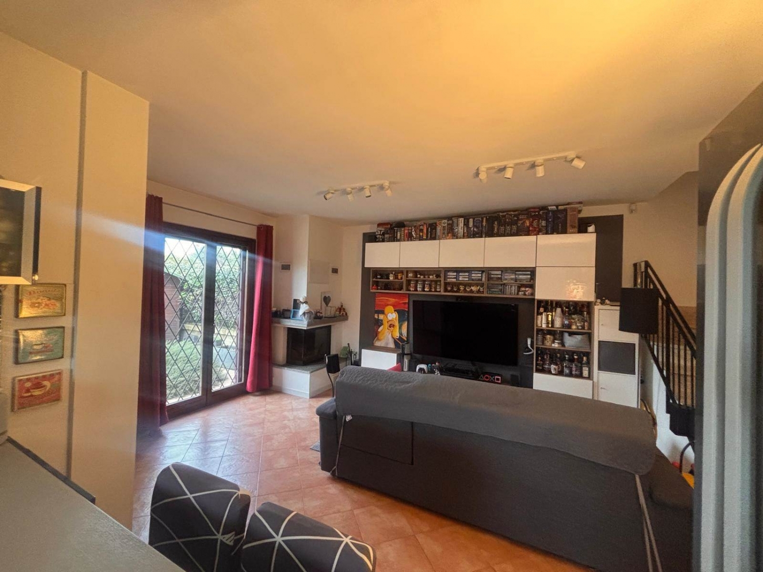Via di scoranello, proponiamo in vendita una porzione angolare villino disposto su due livelli, in contesto residenziale; ingresso carrabile e pedonale. Al piano terra troviamo un soggiorno con camino e cucina a vista, e un bagno con vasca, portico e giardino di ca 200 mq con irrigazione e casetta per ricovero attrezzi, al piano superiore, due camere da letto e bagno con doccia. l'immobile è in ottimo stato, dotato di condizionatori, camino termoventilato, pannelli radianti, portoncino blindato, grate e zanzariere e allarme. Spese condominiali 300 euro annue. classe energetica: g