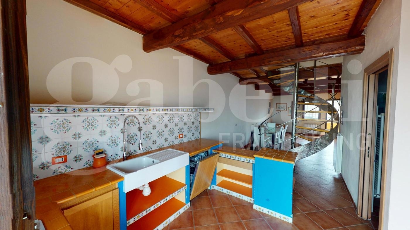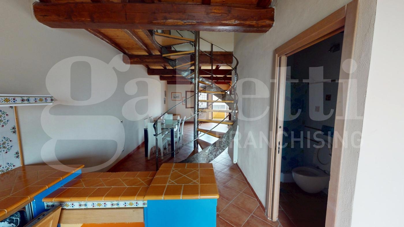 L'agenzia immobiliare gabetti roma bravetta è lieta di proporre in vendita nella zona di castelnuovo di porto, piu' precisamente in via monte cucco. un appartamento su due piani situato nel cuore del parco di vejo. Con una superficie di 113 mq calpestabili in una palazzina ristrutturata 20 anni fa.al primo piano, troviamo un soggiorno, una cucina spaziosa in muratura e un terrazzo dove goderti momenti di relax all'aria aperta. Abbiamo anche un bagno di servizio con box doccia.al secondo piano al quale si accede tramite una bellissima scala a chiocciola in ferro battuto e legno, troviamo due camere da letto accoglienti con tetti in legno e un bagno, rendendo questo appartamento adatto a famiglie o a chi cerca un rifugio tranquillo. Le caratteristiche principali di questo immobile sono gli infissi in doppio vetro in legno, i soffitti dei due piani in legno, parquet negli ambienti al piano superiore e delle mattonelle in cotto al piano terra, inoltre all'appartamento e stato aggiunto un sistema di riscaldamento tramite stufa di recente generazione che puo' tranquillamente sostituire l'impianto di riscaldamento originale.l'immobile è in buono stato e pronto per essere abitato. Non lasciarti sfuggire questa occasione unica di vivere immerso nella natura, ma a pochi passi dai servizi del paese di castelnuovo di porto e morlupo.