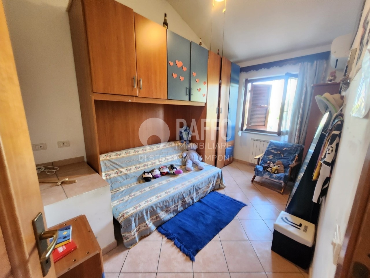 L'immobile, una villetta bifamiliare costruita nei primi anni 2000 si trova all'interno di un comprensorio residenziale 'poggio dell'asino' e si sviluppa su tre livelli. Ha una superficie lorda pari a 170 m2circa ed è caratterizzata da spazi comodi e una piacevole doppia esposizione su due giardini di proprietà di circa 200 mq. Da una parte troviamo il giardino con accesso carrabile e posto auto privato, dall'altra un secondo spazio verde riservato che affaccia su giardino confinante lontano dalla strada, con accesso dal portico o dalla porta finestra della cucina.l'immobile è cosù composto: al piano terra troviamo soggiorno, servizio e cucina. Il primo piano ha 2 camere matrimoniali ed una cameretta con soppalco e balcone, un bagno. La sala hobby è con camino ed un vano che può essere adibito a cucina o a camera da letto, un servizio con doccia e finestra e un ripostiglio.l'immobile si presenta in ottime condizioni di conservazione, ma con finiture dell'epoca che necessitano sicuramente di un intervento di ammodernamento per valorizzare al meglio il potenziale dell'immobile. una soluzione ideale per chi cerca indipendenza, spazi esterni vivibili e la possibilità di personalizzare la casa secondo il proprio gusto.