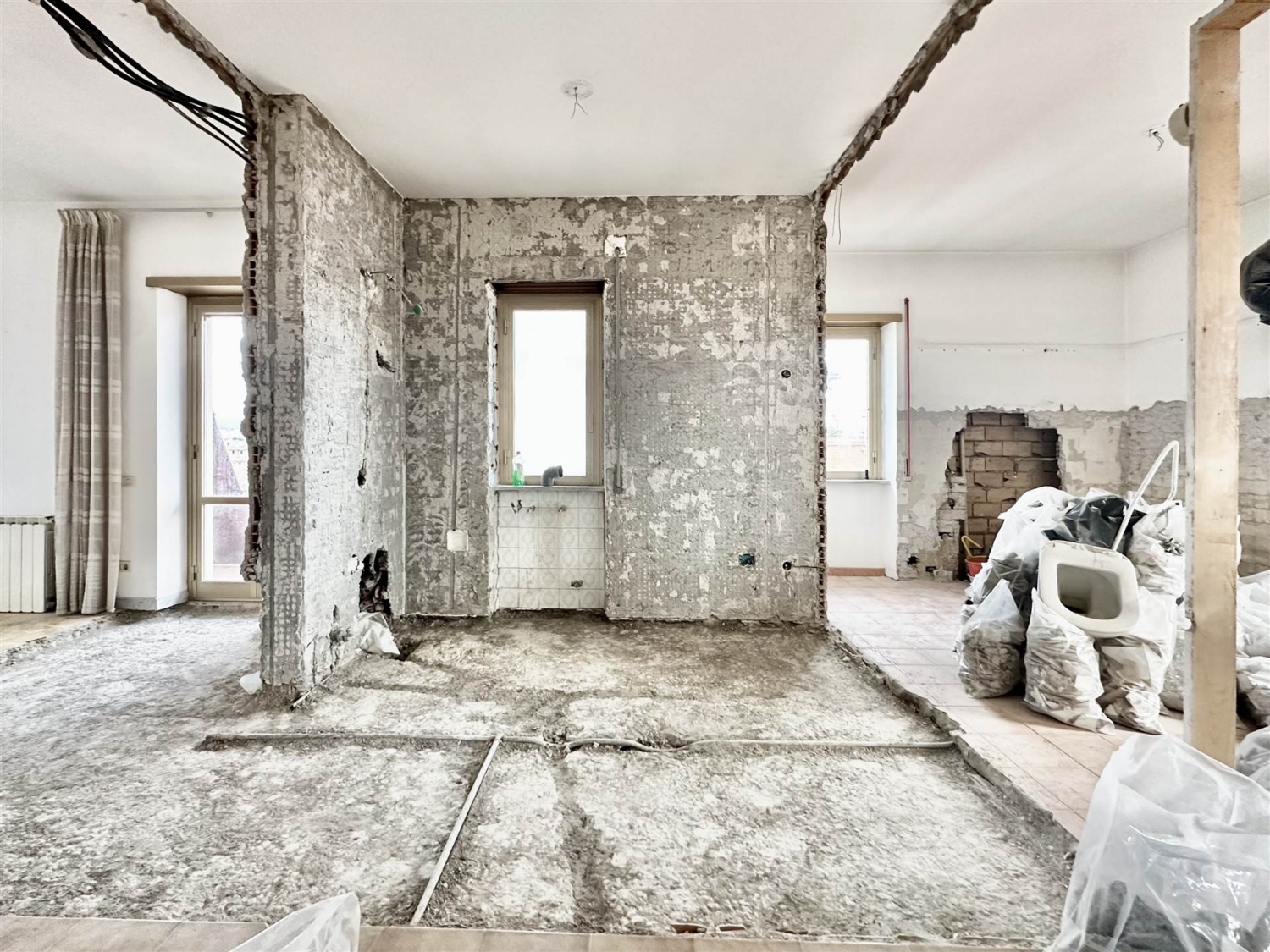 Ciampino - zona mura dei francesi - attico in vendita - immobiliare santa caterina di a. Scozzariattico 3 vani in corso di ristrutturazione integrale - camere da letto 2 - bagni 1 - superficie abitabile 70 m - terrazzo 37 m - balcone 5 m - superficie commerciale 90 m -in riservato comprensorio su via milano nella zona mura dei francesi del comune di ciampino, proponiamo in vendita un delizioso attico posto al piano 4° di edificio residenziale ricavato dal frazionamento di una più ampia unità immobiliare.distribuito su 70 mq interni ed oltre 40 m esterni, l'immobile rilegge in chiave moderna gli spazi originali dell'epoca di costruzione e si comporrà di: living con cucina a vista, due camere da letto, bagno, ripostiglio, comodo ingresso / disimpegno, il tutto con affaccio sulla grande terrazza panoramica. Un piccolo balcone di servizio sarà di aiuto per i servizi sul lato minore della casa ospitando i nuovi impianti ed eventualmente una zona lavanderia esterna. la ristrutturazione appena iniziata prevede il rifacimento di tutti gli impianti, demolizioni e ricostruzione per realizzare le nuove disposizioni interne, posa in opera di rivestimenti moderni (a scelta per l'acquirente fra una piccola ma curata selezione), infissi nuovi con doppio vetro camera volti al contenimento energetico, serrande elettriche, predisposizione per la climatizzazione interna in tutte le stanze, porte arredo e blindata all'ingresso, finiture accurate nei dettagli. il progetto di frazionamento nasce dal recupero di una grande unità abitativa rimasta ferma internamente al tempo di costruzione del fabbricato, con l'obbiettivo di ottenere una divisione funzionale in n. 2 (due) unità completamente speculari, autonome e già autorizzate. Ancora attuale è la possibilità di scegliere l'acquisto dell'una e/o dell'altra porzione scegliendo di conseguenza esposizione preferita o affaccio. possibilità di acquisto di un posto auto ricompreso all'interno dell'area di parcheggio condominiale riservata. Per visionare i progetti presso il nostro studio, riservare una visita in cantiere o avere maggiori informazioni non esitare a contattarci. Classe energetica: non indicata
