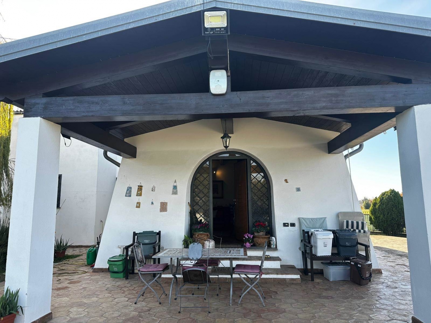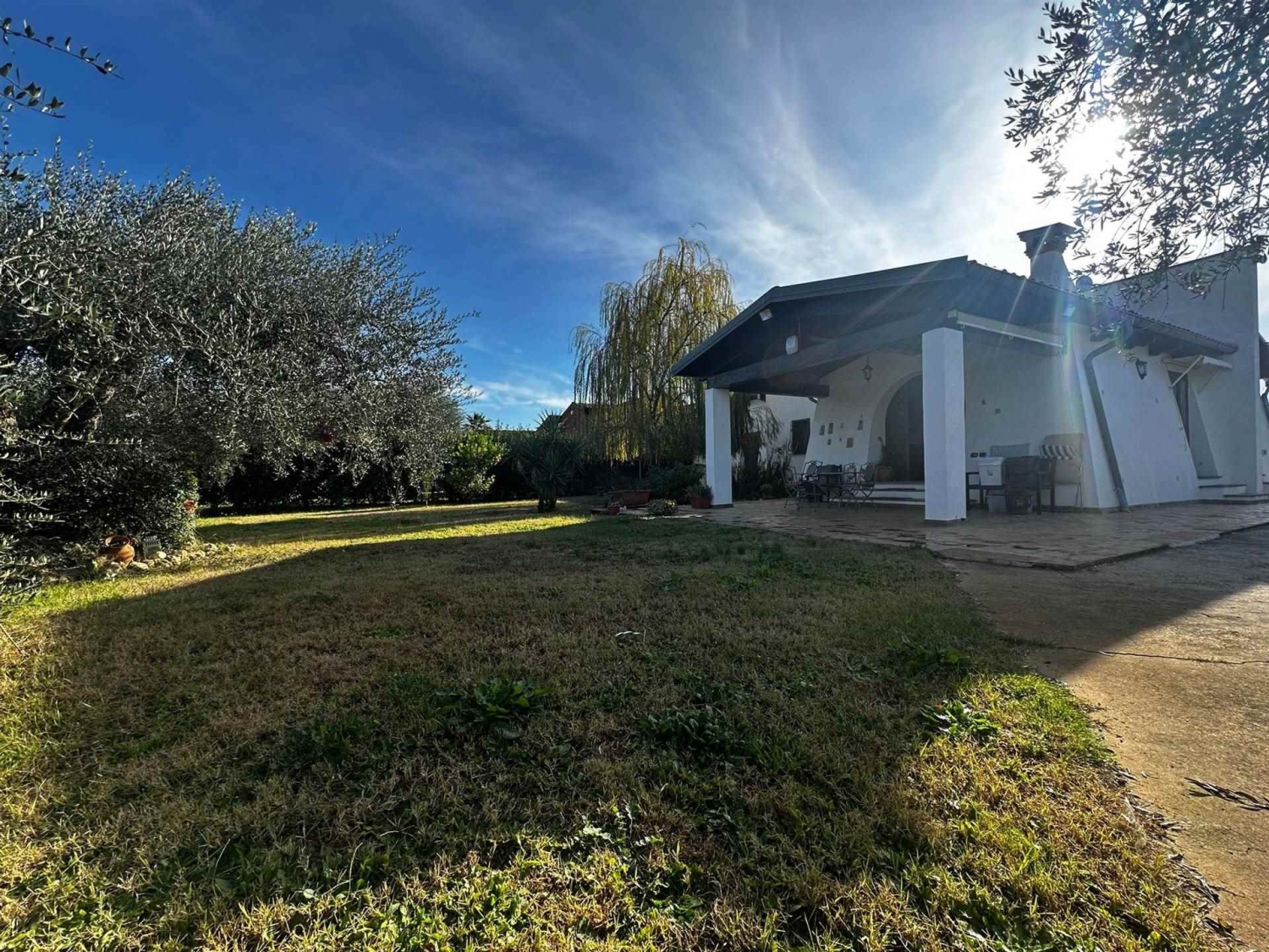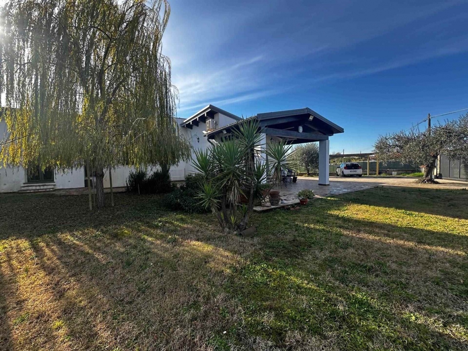 Esclusiva villa su unico livello di 130 mq con ampio giardino completamente pianeggiante.si accede all'interno in un ampio e luminoso salone, una cucina a vista con uscita sul giardino. La zona notte è composta da una grande camera da letto padronale con bagno, una seconda camera matrimoniale e una sala da bagno. Comodo ripostiglio/dispensa.esternamente locale deposito lavanderia di 15 mq ca. all'ingresso troviamo un bellissimo portico, il giardino e una zona adibita all'ingresso delle auto.le rifiniture sono di pregio, con infissi con il doppio vetro, serramenti esterni blindati con grate, impianto di allarme perimetrale e volumetrico, soffitto in legno con travi a vista.predisposizione per camino. Luminosissima. cancello carrabile automatizzato, ingresso pedonale.pozzo per l'irrigazione, alberi ad alto fustoacqua comunaleallaccio alla rete fognaria. Classe energetica: g