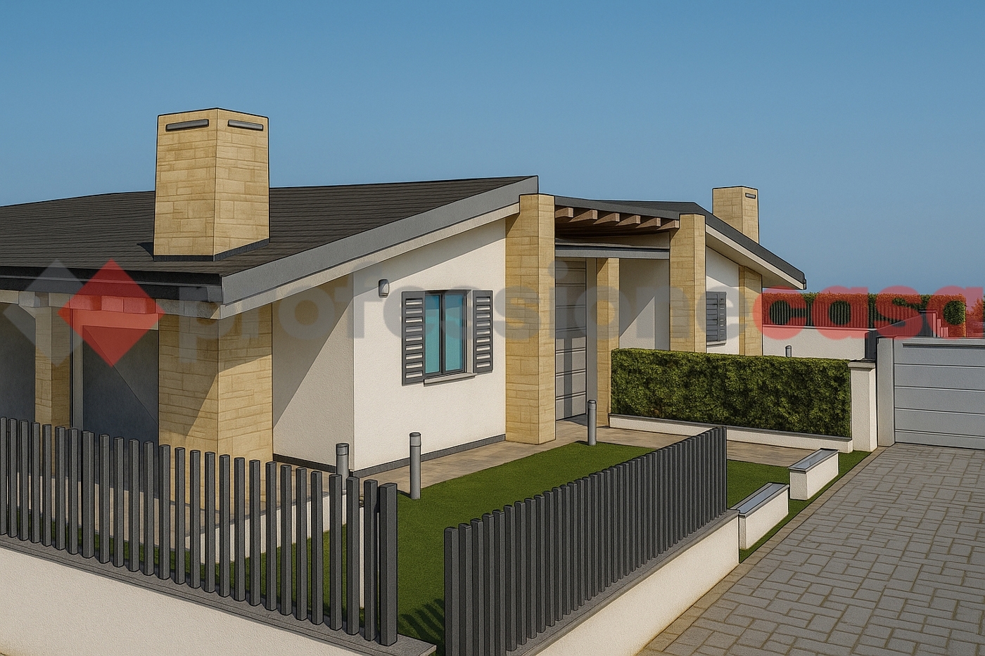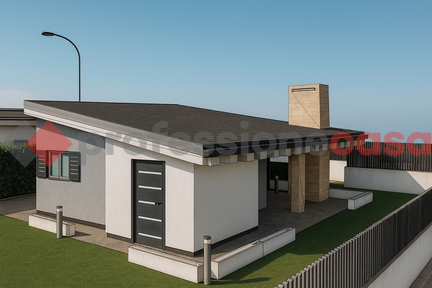 Villa bifamiliare di nuova costruzionefiumicino / isola sacra. L?agenzia professionecasa propone in vendita in via giuseppe tanzillo una villa bifamiliare di nuova costruzione in classe energetica a che verrà realizzata su un unico livello, con rifiniture di alto pregio e con particolare attenzione ai dettagli costruttivi. L? inizio dei lavori è prevista per l'estate 2026 con consegna prevista entro 16 mesi.l?unità immobiliare verrà costruita con una metratura interna reale di 100 mq ed ampio giardino perimetrale di circa 300 mq. Internamente sarà suddivisa in: soggiorno di oltre 45 mq con angolo cottura, camera matrimoniale, camera doppia, due bagni finestrati, terrazzo coperto di 28 mq con possibilità di chiusura a vetro, locale tecnico e box auto pertinenziale. L?ampia metratura e l?assenza di vincoli architettonici consente la realizzazione futura di una terza camera da letto.il capitolato costruttivo di ultima generazione prevede il portoncino blindato con impellicciatura moderna, riscaldamento a pavimento con pompa di calore e predisposizione aria condizionata canalizzata, infissi in pvc o legno a scelta, predisposizione camino, allarme e piscina privata, fotovoltaico da 1.5 kw/h espandibile, con possibilità di rendere il villino eco-sostenibile abbattendo notevolmente i costi di utenze, aumentando il kw/h ed inserendo le batterie d?accumulo.la zona dell?isola sacra a due passi dal mare e dall?area archeologica di ostia antica è servita da mezzi di trasporto destinati verso la zona commerciale di parco leonardo o in direzione contraria verso la stazione di ostia antica (distante meno di 4 km)e munita di diversi negozi commerciali. Le arterie stradali più utilizzate per arrivare a roma centro sono la roma-fiumicino 5km tramite ponte della scafa o la via del mare/ostiense a meno di 3 km. Le prenotazioni saranno vincolate all?inizio dei lavori senza nessun versamento di somme, possibilità di permuta diretta e pagamenti dilazionati stato avanzamento lavori.le presenti informazioni e planimetrie sono puramente indicative e non costituiscono elementi contrattuali.