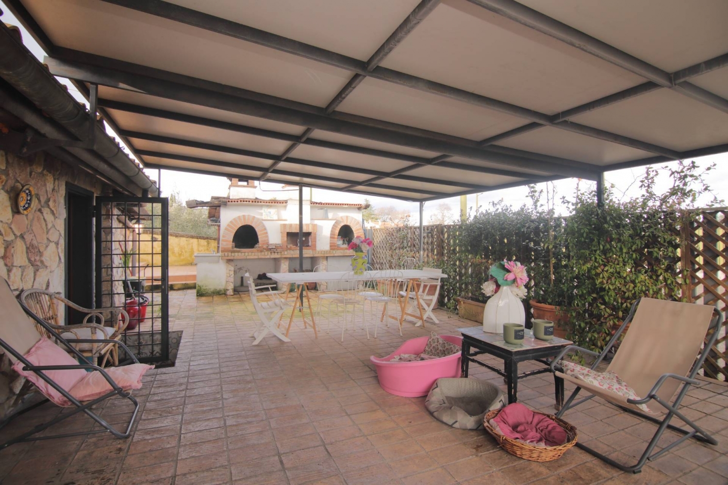 Sacrofano villa esclusiva con piscina e dépendancenella zona monte caminetto e più precisamente in via ferruccio fratini proponiamo in vendita una prestigiosa villa unifamiliare in pietra sarda con piscina, giardino di 700 mq, ampio box, cantina e una comodissima dépendance di circa 30 mq.la spendita villa unifamiliare di 156 mq è stata completamente ristrutturata recentemente e si sviluppa su un livellocomposizione e stato interno :l'immobile internamente è composto da un ampio salone doppio con camino, due grandi camere da letto (possibilità di realizzare tranquillamente una terza camera), grande cucina nuova con fochi lofra, tre bagni e lavanderia.l'immobile è stato ristrutturato recentemente e si presenta pronto per essere abitato.spazio esterno:lo spazio esterno è caratterizzato da un ampio giardino in parte pavimentato, con la piscina e con la presenza di un forno a legna esterno e si presta a fantastiche cene con amici o anche semplicemente per vivere piacevoli momenti di relax.ideale se si hanno bambini e animali domestici in quanto possono scatenarsi liberamente.una parte è di solo terra, adatta alla coltivazione di fiori, piante, alberi ed ortaggi.ampio box auto coperto, oltre vari parcheggi interni all'ampio giardino.note particolari:l' immobile completamente ristrutturato con materiali di pregio è pronto per essere abitato fin da subito.risulta molto luminoso durante tutto l'arco della giornata.porta blindata, pavimento in gres simil legno, porte e finestre artigianali in quercia.bagni con materiali di pregio, sanitari in ceramica opaca.diversi nicchie adibiti come librerie, fatti su misura.travi in legno che danno calore alla splendida abitazione.impianto elettrico nuovo con prese usb.wall box per la ricarica della macchina elettrica.stufa a pellet dielle per il riscaldamento.stufa idro collegata all'impianto.bombolone del gas per la cucina e acqua calda.tanti altri particolari che valorizzano ulteriormente l'immobile.una villa esclusiva, perfetta per chi cerca comfort, eleganza e indipendenza, a pochi minuti da roma.contattaci oggi stesso per una visita: sarà un piacere accompagnarti nella scoperta di questa affascinante soluzione abitativa.le informazioni e le immagini, inserite nell'annuncio, sono dati indicativi e non possono costituire elemento documentale.