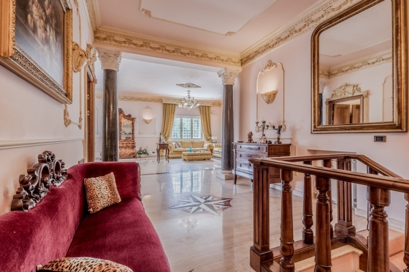 Velletri (rm) in zona prevalentemente collinare precisamente indicata come colle degli dei proponiamo in vendita una prestigiosa villa di mq 600 circa . L'immobile è stato costruito nel 1986 è posizionato su 4 livelli ed è inserito in un grande complesso residenziale molto signorile servito da un grande circolo sportivo con piscina e campi da tennis. all'ingresso del viale che conduce all'abitazione è situata un'area parcheggio ed un grande giardino con una stupenda fontana posta davanti ad una grande scalinata accompagnata da 4 altissime palme. un ampio giardino terrazzato precede la porta dell'ingresso principale della villa ove all'interno è presente un ampio corridoio di accesso con una imponente scalinata in legno che conduce al piano inferiore. Una delle porte del corridoio ci introduce in una romantica sala da pranzo in stile antico ed affianco c'è l'accesso all'appartamentino della servitù . Sul lato opposto del corridoio d'ingresso è collocata inoltre un ampia cucina abitabile . In fondo al grande ingresso sono disposte due sontuose colonne in marmo nero con capitelli bianchi che presentano un raffinato salone triplo di rappresentanza con camino fornito di pavimenti in marmo pregiato con stupende decorazioni . Le pareti hanno dei bellissimi stucchi veneziani con altre varie decorazioni . da un lato del salone un corridoio conduce a tre ampie camere da letto con relativi bagni . Una sinuosa scala posizionata in un'altro angolo del salone conduce invece al piano superiore ove i pavimenti sono di un favoloso e lucido parquet in legno pregiato che si estende per tutte le 5 camere da letto con i relativi bagni in camera . La suite matrimoniale possiede anche un camino ed grande balcone . Da una delle camere da letto del piano si raggiunge mediante una scala un'accogliente camera mansardata . Il piano terra presenta una ampia sala hobby con camino molto luminosa . In un lato della sala vi è l'accesso ad una bellissima sala biliardo . Sullo stesso lato vi è un disimpegno che conduce ad una zona notte con tre camere da letto con altri 3 relativi bagni . Nel disimpegno c'è una porta d'accesso ad una grande cantina e ad un ampio garage che può ospitare fino a 10 auto. L'immobile è fornito di impianto di riscaldamento autonomo e impianto d'allarme con telecamere per tutta l'area dell'immobile. Le finestre sono fornite di grate e gli infissi sono in legno e doppio vetro antisfondamento. Completano la proprietà ampi balconi ,una terrazza, ed un grande portico adornato da bellissime siepi . Nel piano terra ci sono 5 locali tecnici ed il proseguimento del giardino si immerge in un grande parco con alberi di alto fusto e piante da frutta per un totale di mq 2500 circa. La location è ideale per cerimonie ed è adattabile anche a casa di riposo e hotel . trattative riservate