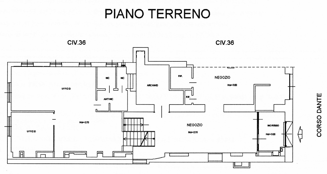 Locale commerciale di mq.173 lordi al piano terreno e rialzato (utili mq.150) oltre a mq.117 lordi al piano seminterrato (utili mq.100) per una superficie lorda totale mq.290 (utili mq.250).
