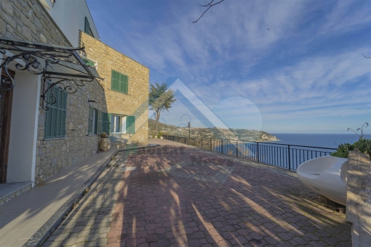 Proponiamo in vendita a bordighera in splendida posizione con piena vista mare, villa bifamiliare di circa 450 mq distribuiti su 3 livelli di cui due adibiti a abitazione e uno a magazzino e taverna.al piano terra vi è il magazzino di circa 200 mq con bagno e taverna con zona bar e caminetto;al piano primo vi è il primo appartamento di circa 120 mq composto da ampia zona giorno con cucina, tre camere da letto di cui due con accesso ad un ampia terrazza vista mare;al piano secondo troviamo un appartamento di 100 mq anch'esso con tre camere da letto e bagno.esternamente vi è un garage e una cella frigorifera di 34 mq, e 1500 mq di terreno con la possibilità di edificare una piscina. Classe energetica: g