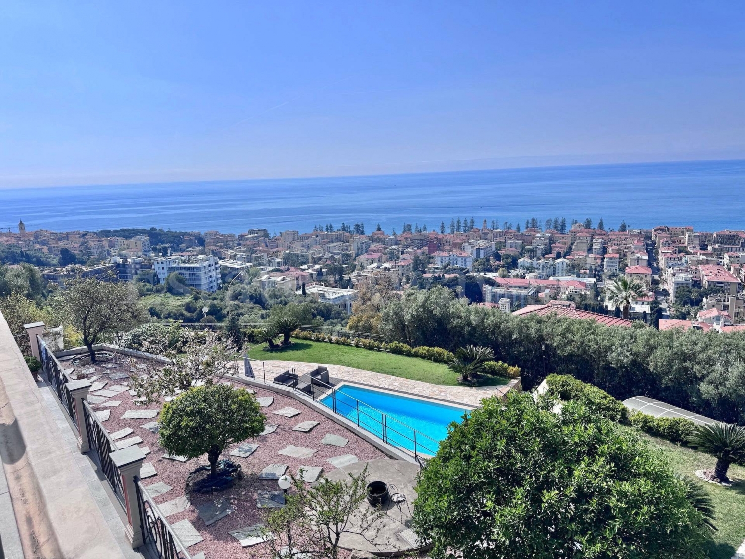 Bordighera, in posizione dominante e riservata, proponiamo una proprietà di assoluto prestigio: una villa di ampia metratura, rara sul mercato, che coniuga vista mare aperta, spazi generosi e un livello di privacy difficilmente eguagliabile. la residenza si sviluppa su circa 480 mq distribuiti su più livelli, ciascuno pensato per offrire indipendenza, comfort e grande versatilità d'uso. il piano terra accoglie con una zona giorno calda e luminosa, impreziosita dal camino e direttamente collegata a un ampio porticato affacciato sul mare, perfetto per vivere l'esterno in totale relax. La cucina abitabile, spaziosa e funzionale, si apre su una zona esterna attrezzata con gazebo e area barbecue, ideale per momenti conviviali in ogni stagione. La zona notte comprende una camera matrimoniale e tre ulteriori camere, servite da due bagni ampi e ben rifiniti. Tutti gli ambienti godono di accesso diretto al giardino, creando una continuità armoniosa tra interno ed esterno. il primo piano, completamente indipendente, si distingue per ambienti eleganti e ben distribuiti: un ingresso conduce a un grande soggiorno con terrazzo privato e a una cucina abitabile di generose dimensioni. Completa il livello uno studio con vista mare, perfetto anche come area relax o lettura. La zona notte ospita una camera padronale con bagno en suite e accesso diretto al terrazzo, oltre a un secondo bagno di servizio. L'intero piano è circondato da un ampio terrazzo angolare che regala una vista panoramica di grande impatto. il piano seminterrato, collegato internamente, è stato concepito come spazio dedicato al tempo libero e alla funzionalità: qui troviamo una grande taverna con camino e cucina a vista, ideale per accogliere ospiti, oltre a numerosi locali accessori tra cui lavanderia, locali tecnici, deposito e servizi. un ulteriore livello seminterrato, accessibile esclusivamente dall'esterno, ospita un ampio garage in grado di accogliere più auto, oltre a spazi tecnici e di deposito. A questo si aggiungono posti auto coperti e scoperti all'interno della proprietà, per una capienza complessiva estremamente rara per la zona. all'esterno, la villa è circondata da circa 2.500 mq di terreno privato, completamente recintato, che garantisce sicurezza e totale riservatezza. Il giardino si sviluppa su più fasce terrazzate, curate e ben organizzate, tra cui spicca la scenografica area piscina, dotata di spazi dedicati al relax e all'accoglienza degli ospiti. completa la proprietà un edificio indipendente, attualmente adibito a deposito, con possibilità di trasformazione in dependance, area fitness o spazio benessere, aumentando ulteriormente il valore e l'esclusività dell'immobile. la posizione è strategica: tranquilla e dominante, ma allo stesso tempo comoda ai servizi e ai collegamenti principali, a pochi minuti dal centro e dalle rinomate località di sanremo e dalla vicinanza con la francia e l'aeroporto internazionale di nizza. una proprietà unica nel suo genere, pensata per chi desidera distinguersi e vivere in un contesto esclusivo dove spazio, panorama e riservatezza si fondono in modo irripetibile.