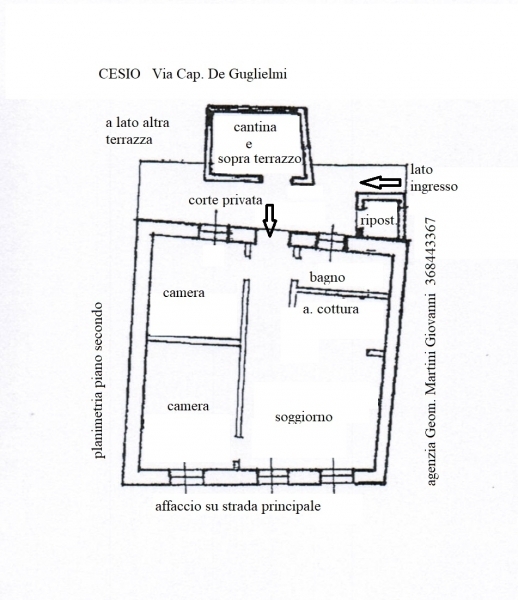 Vendesi a cesio , appartamento con entrata autonoma, di soggiorno con angolo cottura, bagno, due camere da letto, cortile privato, cantina, terrazza, riscaldamento autonomo, semi arredata nuovo, il tutto in ottimo stato, per informazioni e visite cell agenzia geom. Martini giovanni classe energetica = g ipe = 193.11 kwh/mq