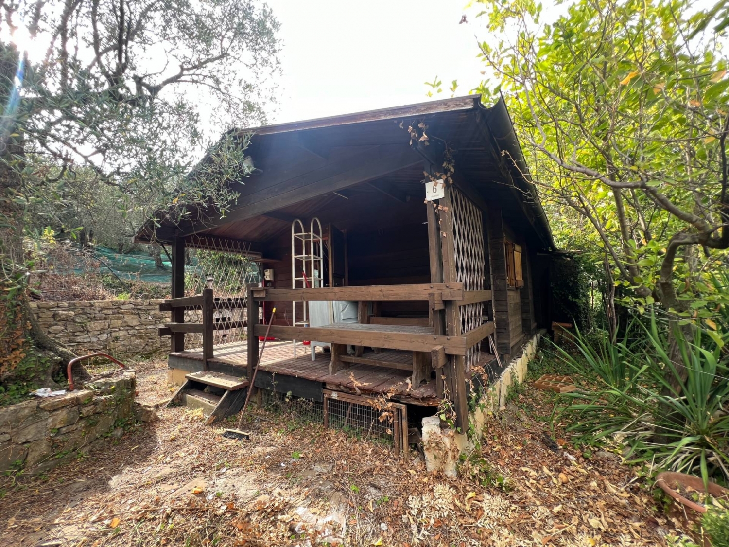 Diano arentino - municipio dotato di accesso carrabile mediante vecchia mulattiera e circondato da circa 700 mq di terreno agricolo coltivato ad ulivi, questo chalet risulta regolarmente accatastato come abitazione di categoria a/3, ed è composto internamente da un salotto con angolo cottura, una camera matrimoniale ed un bagno finestrato con doccia. all'esterno sono presenti un grande loggiato, forno, area barbecue, capanno degli attrezzi e svariati terrazzamenti dalla superficie pianeggiante e sfruttabile. le condizioni esterne sono eccellenti, il legno è perfettamente sano e cosmeticamente ben conservato, mentre l'interno è in ordine. l'immobile gode di normale allaccio alle reti elettrica, idraulica e fognaria.da valutare anche l'indice di edificabilità e la conseguente possibilità di costruire un secondo, piccolo fabbricato o di sfruttare tutta la cubatura disponibile per la realizzazione di un unico immobile, anche in muratura.