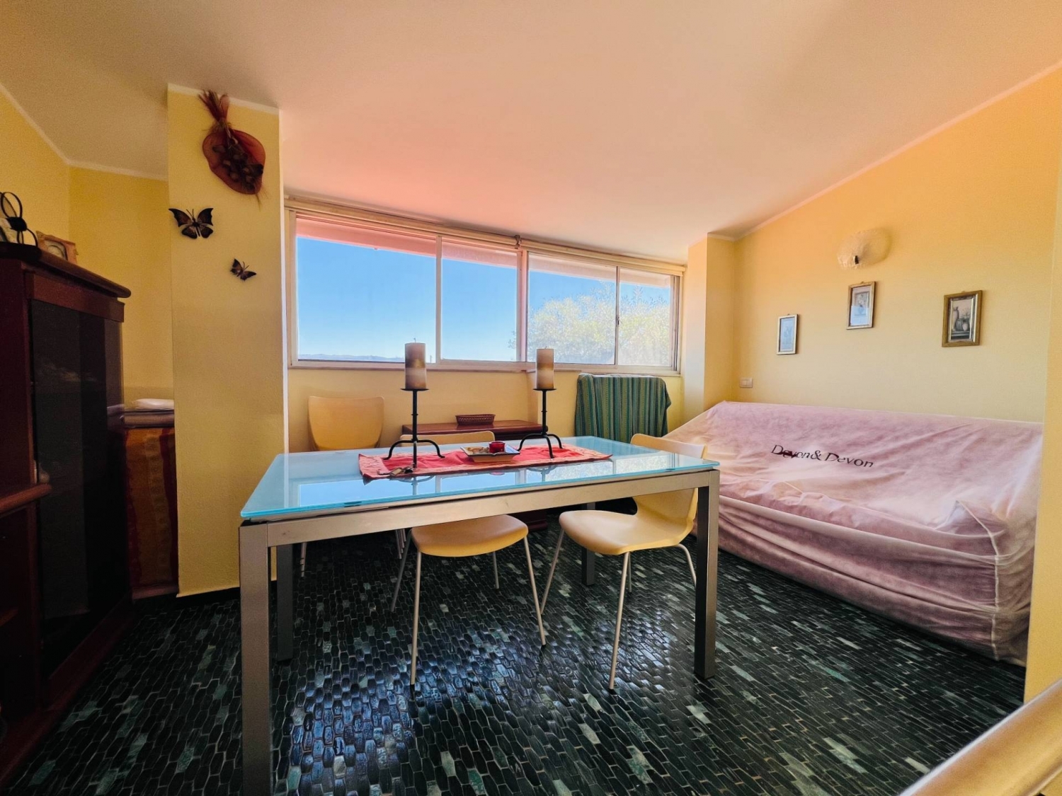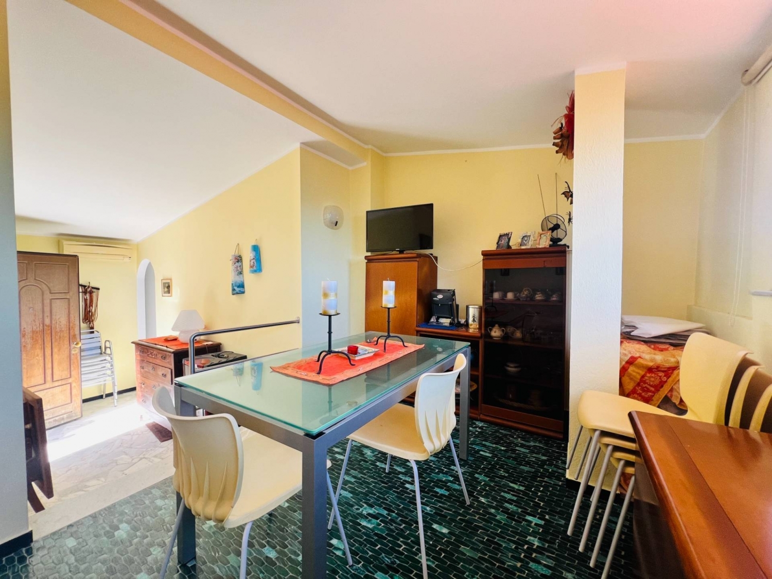 Appartamento in vendita a diano marina, situato in un complesso di sole villette a circa 1500 mt dal mare e dal centro, offre una superficie totale di circa 70 metri quadrati con accesso indipendente su un ampia corte esterna privata-la zona giorno è composta dall'ingresso, soggiorno con vista rivolta verso il mare e un cucinotto separato.la zona notte è composta da due camere da letto con armadi a muro e un bagno finestrato con doccia.l'appartamento è parzialmente arredato e il riscaldamento è autonomo, grazie all'istallazione di una stufa a pellet e al climatizzatore.l'ingresso è indipendente su un cortile privato al quale si ha accesso da una scala in muratura.completa la proprietà due posti auto con dissuasore di parcheggio.ideale per chi cerca un'abitazione comoda e funzionale in una posizione tranquilla.