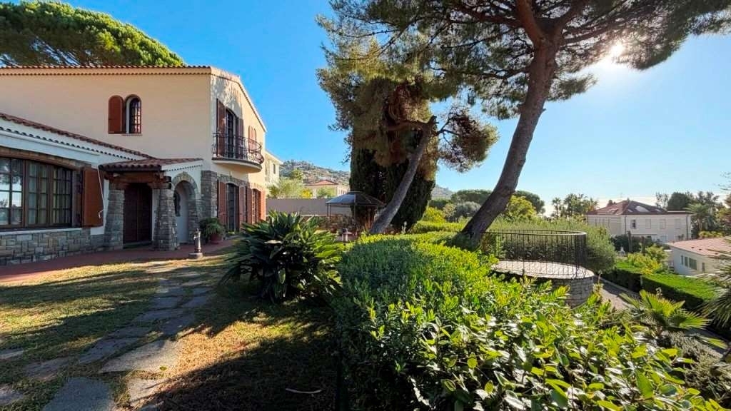 Villa esclusiva di 350 mq con splendida vista mare da ogni piano, situata in posizione panoramica e riservata a soli 15 minuti a piedi dalla spiaggia.la proprietà offre un ampio ingresso privato con parcheggio esterno per 4-5 auto e un comodo garage di grandi dimensioni. è circondata da un curatissimo giardino articolato in diverse zone. Davanti alla casa si trovano un gazebo con tavolo e sedie per pranzi all'aperto e un piccolo piazzale panoramico. L'area barbecue coperta offre un'ulteriore possibilità per godere del tempo all'aperto.la villa, in tipico stile mediterraneo, presenta caratteristiche particolari come la porta d'ingresso in legno massiccio finemente lavorata e le porte interne, ciascuna delle quali è un vero e proprio oggetto d'arte. Travi a vista, camino, mobili in legno massiccio: tutte le finiture sono state ripristinate come in origine, cosù come serramenti, pavimenti e lampadari.la proprietà è composta dal corpo principale e da un appartamento indipendente al livello seminterrato, accessibile sia internamente sia esternamente tramite il garage.il corpo principale si sviluppa su due livelli. Al primo livello troviamo l'ingresso su un ampio soggiorno suddiviso in zona pranzo, zona camino e zona salotto; uno studio (che può essere utilizzato anche come camera grazie alla presenza di un divano-letto), la cucina abitabile, una camera matrimoniale e un bagno finestrato con vasca. Dalla cucina si accede direttamente al giardino, dove si trova un piccolo frutteto sul retro della villa. Al secondo livello, raggiungibile tramite un'imponente scala interna, si trova una suite composta da camera da letto con balcone e splendida vista panoramica, ampio guardaroba e grande bagno finestrato con vasca e box doccia.l'appartamento al piano inferiore è composto da una camera matrimoniale con bagno privato, un bagno di servizio, una seconda camera, una sala da biliardo con cucina a vista e un ripostiglio.la villa è dotata di internet ad alta velocità, tv ip, finestre in legno con doppi vetri, aria condizionata e cucina completamente attrezzata. Il giardino, finemente curato con prato, alberi da frutto e irrigazione automatica, garantisce privacy e comfort; il servizio di giardinaggio è incluso nell'affitto.una residenza di prestigio, perfetta per chi desidera vivere il mare in un contesto esclusivo e raffinato.classe energetica: in fase di valutazione