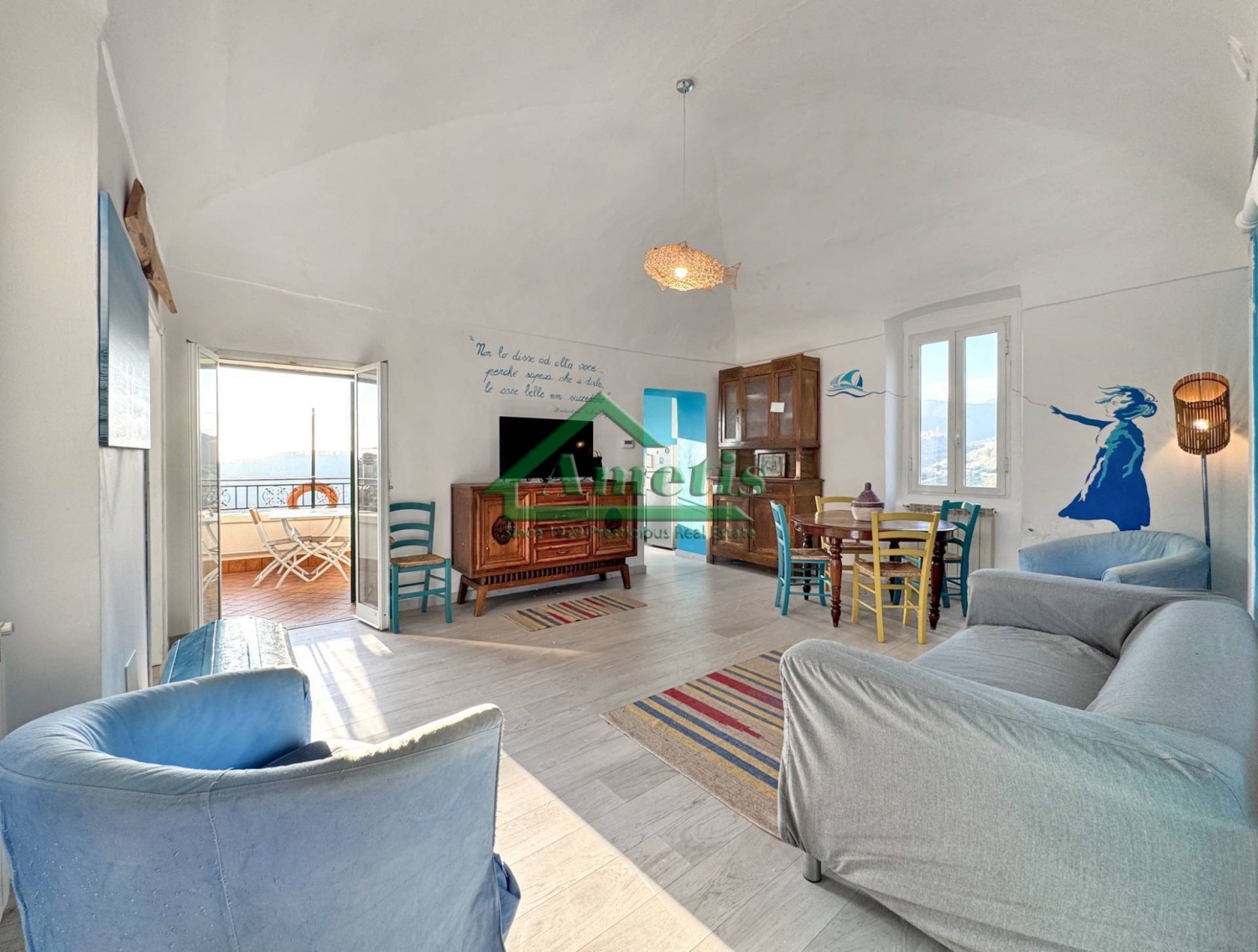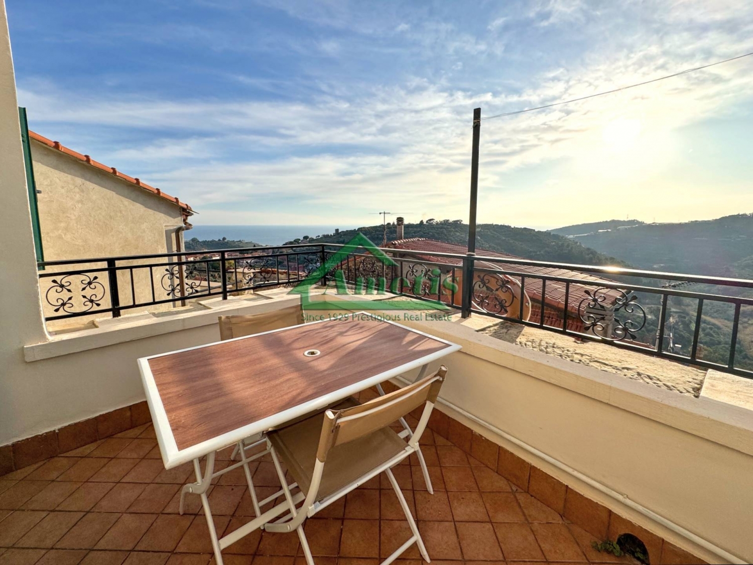 Nel caratteristico borgo ligure del comune di pompeiana, a 4km dal mare di riva ligure, l'agenzia immobiliare ametis propone in vendita nel centro storico questa esclusiva porzione superiore di casa rustica in pietra, articolata su livelli sfalsati che si estende sino al tetto, con terrazza vista mare.la proprietà è accessibile dalla strada principale (parcheggio auto) attraversando un comodo carruggio ben curato e senza gradini, circa 60 metri. Dal portone l'accesso avviene da scala comune con altra proprietà immobiliare sino al piano ammezzato, tra i livelli primo e secondo.l'appartamento è disposto su due livelli (piani secondo e terzo) collegati tra loro da scala interna ed occupa una superficie di circa 136mq catastali comprensivi del terrazzo. dal soggiorno con zona pranzo si ha accesso diretto alla terrazza vivibile con vista mare, esposta a sud-ovest, soleggiata tutto il giorno sino al tramonto; la cucina ha due finestre, di cui una vetrata fissa 'a quadro' da cui si vede il mare; il bagno è comodo e spazioso; ci sono due camere di cui una di passaggio con soppalco ed una matrimoniale collegata anch'essa ad altra stanza attualmente utilizzata come ripostiglio con doppio accesso, sia dall'interno che dal vano scala: questa completa il piano secondo; nel piano ammezzato, tra il secondo e terzo ci sono un secondo bagno ed un'altra camera matrimoniale; al terzo piano, infine ripostiglio posto all'interpiano tra primo e secondo.lo stabile è stato recentemente oggetto di una importante riqualificazione per quanto riguarda la facciata esterna, imbiancata lasciando a vista i particolari in pietra, tutte le finestre hanno le persiane verdi in alluminio; in alto spicca il terrazzo che domina il paese da cui si ha una vista che si estende dalle colline sino al mare.a pompeiana sono presenti diverse attività che offrono servizi di ristorazione e vendita di generi alimentari:bar osteria della piazza: situata nella piazza storica (piazza santa maria), offre cucina ligure rivisitata (celebre il coniglio alla ligure) e aperitivi con vista mare.bona a vui - trattoria di tradizione: propone piatti tipici della tradizione ligure di ponente, come il brandacujun e i tajarin al ragù di coniglio.maiben! ristorante: un piccolo locale con circa 10 posti che utilizza prodotti bio a km zero.bar osteria della piazza: oltre alla ristorazione, funge da bar centrale per colazioni e soste veloci.dau vescu bar trattoria: un'altra opzione locale per servizi di bar e ristorazione semplice. a bitega - ginatta: un piccolo negozio di alimentari ben assortito in via giuseppe mazzini, dotato di macelleria e banchi per prodotti freschi (frutta, verdura, salumi e formaggi).euro market s.a.s.: situato in piazza g. Verdi, offre pane fresco, prodotti locali, surgelati e servizi aggiuntivi come ricariche telefoniche ecc.richiedi una visita e goditi il tuo piccolo angolo di liguria a pompeiana, piccolo borgo tra mare ed ulivi.agenzia ametis dal 1929 tel. + cell. E whatsapp +