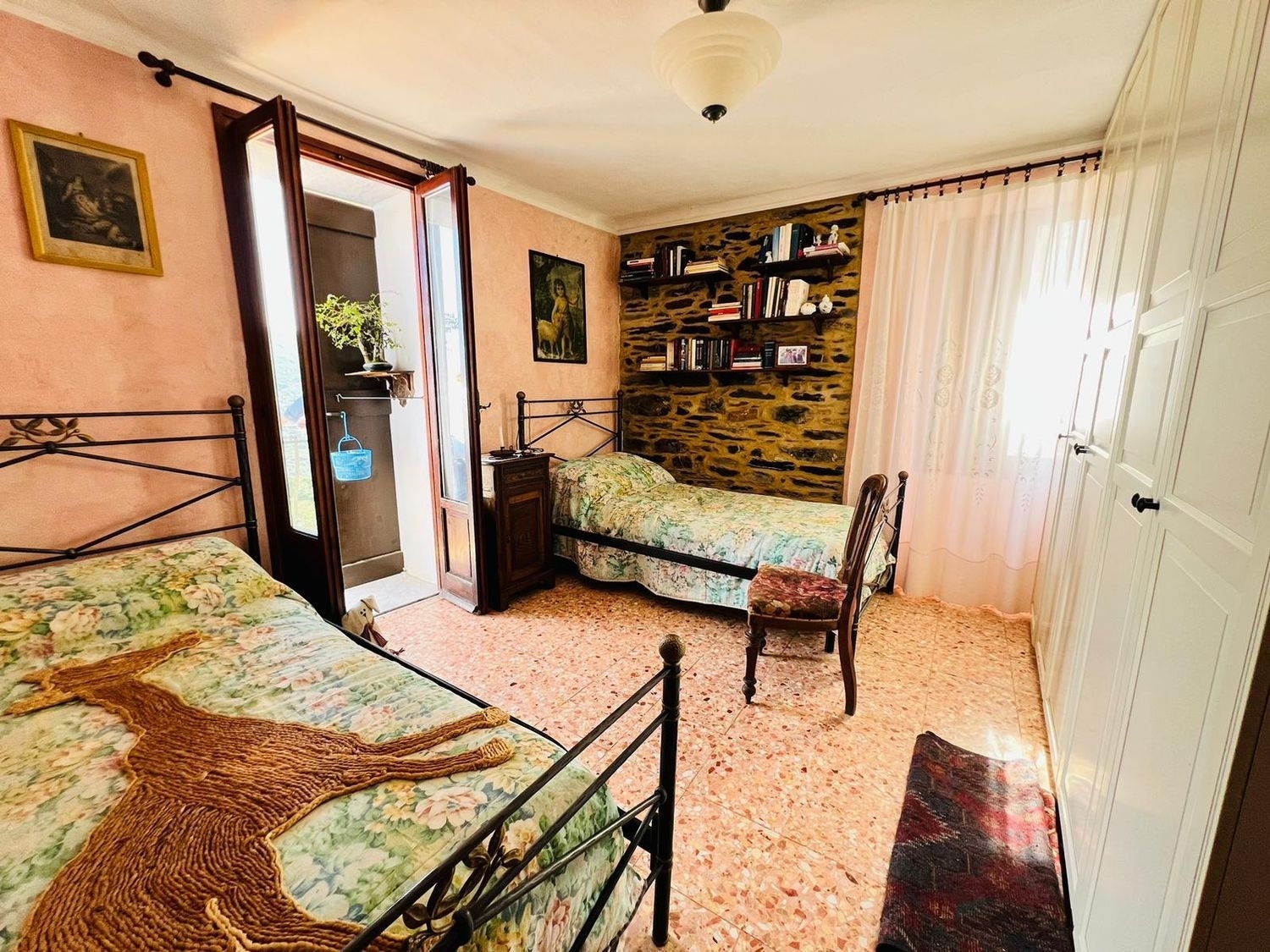 Villatalla - nel rigoglioso entroterra ligure, casa indipendente disposta su due livelli con balcone e splendida vista mare. al pian terreno l'immobile è composto da ingresso su disimpegno, cucina con camino funzionante ed ampio soggiorno, al piano superiore la zona notte è composta da un bagno finestrato e due camere da letto matrimoniali aventi sfogo su balcone con splendida vista sulla vallata e sul mare. l'immobile viene venduto arredato ed è caratterizzato da travi in legno a vista e pareti in pietra. al piano seminterrato è presente una pratica taverna. possibilità di acquisto di un ampio giardino piantumato e terreni a circa 300 metri dall'immobile. tutti gli impianti sono autonomi, non ci sono spese condominiali.