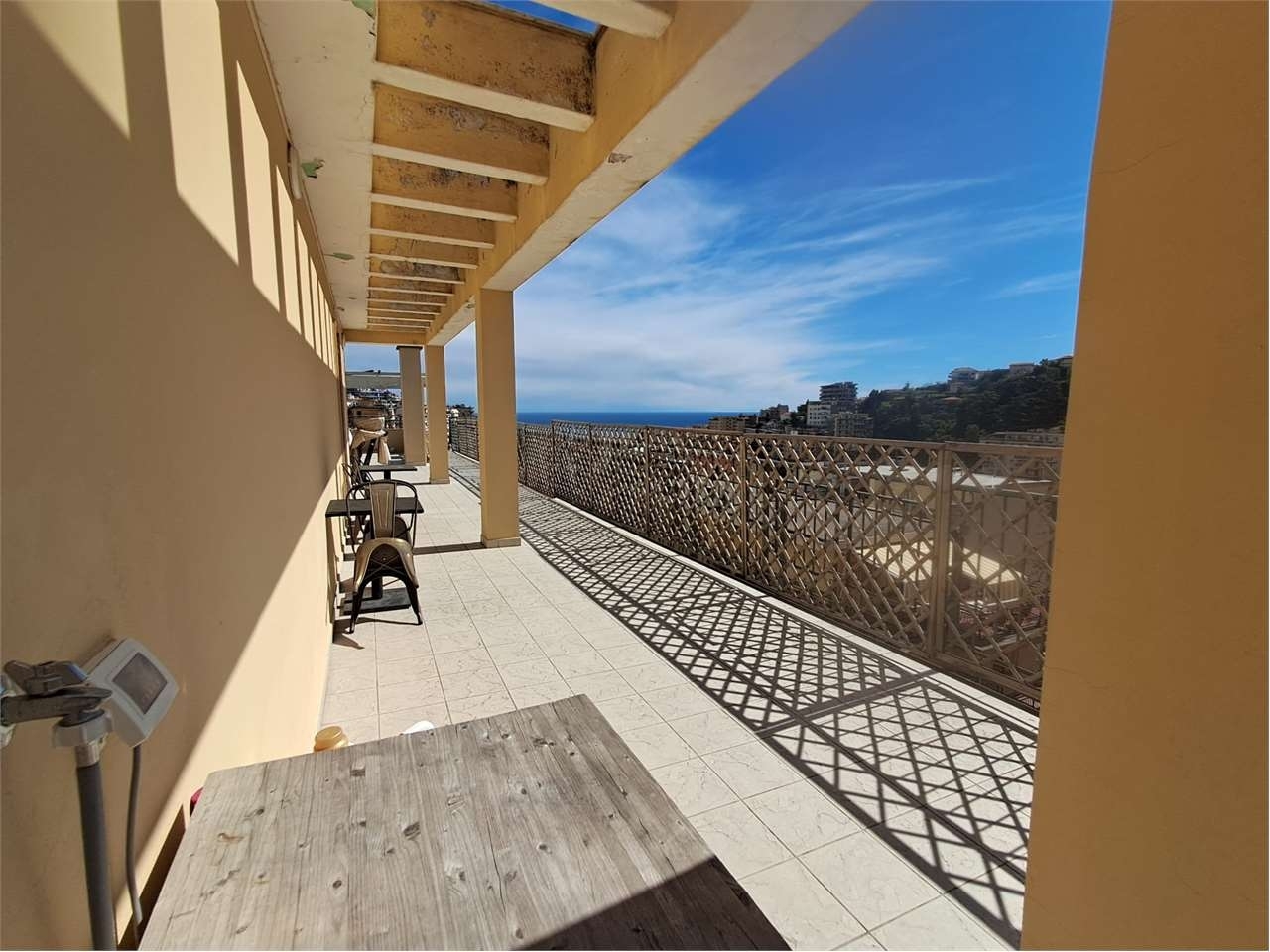 Attico luminoso con terrazzo perimetrale sanremo, via g. Galilei (zona farmacia colombo).in vendita grande attico al sesto piano con ascensore, situato in posizione comoda e ben servita. L'appartamento è arredato, in ottime condizioni, e gode di una luminosità eccezionale grazie all'esposizione libera su quattro lati.superficie interna di 133 mq, composta da ampio ingresso, corridoio spazioso, soggiorno di generose dimensioni con cucina moderna a vista, due camere matrimoniali, una terza camera più piccola, bagno principale finestrato con vasca e secondo bagno finestrato di servizio. Il terrazzo perimetrale offre diverse zone vivibili, inclusa un'area ampia con pergolato.completa la proprietà una cantina. Posto auto disponibile in affitto.richiesta: 295.000 €classe energetica: g