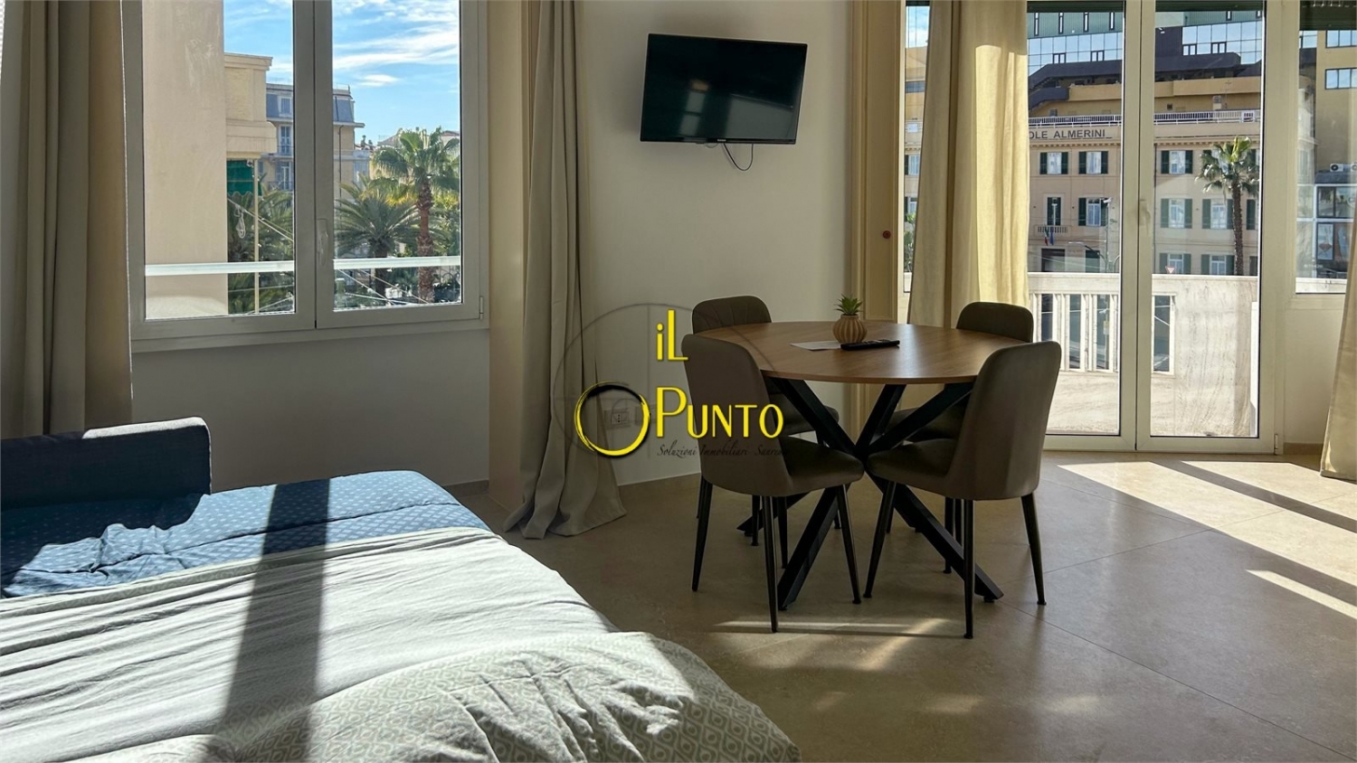 Sanremo grande bilocale ristrutturato con balconi e posto autonnquando ho aperto la porta la prima sensazione è stata: bello spazio.nuno spazio ristrutturato con attenzione, dove tutto è già al suo posto e pronto per essere vissuto.nnla ristrutturazione si percepisce subito. Porta blindata, ambienti ampi e ben definiti, distribuzione fluida e naturale.nl'appartamento è completamente arredato e climatizzato, con un equilibrio che restituisce immediatamente una sensazione di comfort e solidità.nnsoleggiatissimo per tutta la giornata, con volumi generosi e buone proporzioni.nil soggiorno ha un balcone a semicerchio che regala una vista aperta sulla città, sul verde della collina del centro storico e sul santuario che domina sanremo.nnil secondo balcone è collegato alla camera da letto, uno spazio riservato che valorizza la zona notte.nla camera è regolare, già organizzata in modo pratico e armonioso.nil bagno segue lo stesso linguaggio dell'intera casa, con superfici comode e una continuità che rafforza la sensazione di ordine.nnla posizione è centrale: il mare è a un minuto e tutti i servizi sono sotto casa, ideale per vivere sanremo senza stress.nper l'auto è disponibile un posto auto scoperto proprio vicino l'edificio, un valore concreto che semplifica davvero la vita in centro.nnse cerchi spazio, sole tutto il giorno e una posizione centrale, chiama adesso (+39) nn(certificazione energetica in fase di definizione) - maggiori dettagli: climatizzazione, doppi vetri, porta blindata