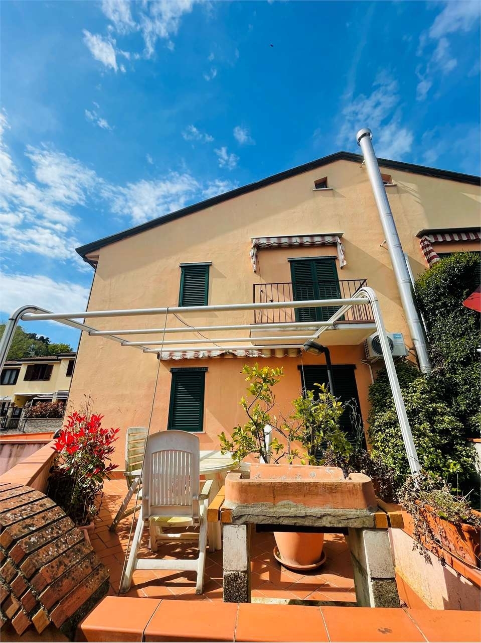 Cerchi una villetta al prezzo di un appartamento? progetti e case ha la soluzione per te! ameglia piano ottima collocazione per questa villetta a schiera in ottimo stato e sviluppata su due livelli oltre a mansarda, cosù distribuita:al piano terra troviamo l'ingresso indipendente da vialetto di accesso, spaziosa corte pavimentata e già provvista di tenda da sole per poter godere di momenti in tranquillità, ingresso nel soggiorno con zona pranzo, cucinotto separato, locale lavanderia/bagno, scala di accesso al piano primo due camere da letto di cui una con terrazzo e tenda da sole, bagno con doccia, scala a chiocciola che conduce alla mansarda, grande open space da adibire a terza camera oppure studio.completa la proprietà una grande cantina e un bel posto auto.oggetto in ordine, valido come prima o seconda casa.richiesta €. 199.000,00 classe energetica: e 74 kwh/m3 a