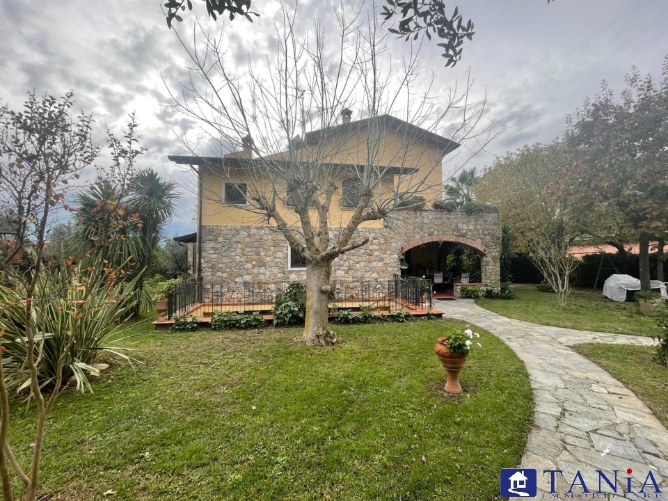 A confine tra la liguria e la toscana nun'opportunità unica di possedere una lussuosa villa indipendente, vista mare, immersa nel verde e dotata di ogni comfort. Con una superficie di 330 mq, questa splendida residenza di pregio, perfetti per ospitare la tua famiglia e i tuoi ospiti. Goditi la vita all'aria aperta con il suo ampio terrazzo e il giardino privato, ideale per momenti di relax e cene all'aperto. Nla villa si compone a piano terra da un portico da cui sia accede all' ingresso, salone, cucina ampia dove si accede ad un ulteriore portico, ripostiglio/lavanderia, bagno; al piano superiore si accede da una favolosa scala in marmo che porta ad un salotto con camino, 2 camere matrimoniali con bagno privato; al piano superiore camera con bagno. Completa la proprietà la taverna con camino con accesso interno ed esterno, cantina e loc. Caldaia nninoltre, non dovrai più preoccuparti di trovare parcheggio grazie ai posti auto interni. E se ami fare un tuffo in piscina, sarai felice di scoprire che c'è anche una splendida piscina a disposizione. Non perdere l'occasione di vivere in una villa di prestigio, contattaci subito e scopri di più su questa splendida residenza. Rif. 4576 - maggiori dettagli: porta blindata, cucina abitabile, sistema di allarme, camino, cantina, ripostiglio, climatizzato