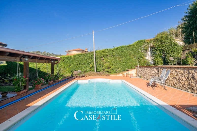 Nella primissima periferia di sarzana, a pochi passi dal centro storico ma immersa nella quiete e nel verde, proponiamo in vendita una splendida porzione di villa bifamiliare di circa 310 mq, caratterizzata da finiture di altissimo livello e da un'eleganza senza tempo.la proprietà si distingue per i dettagli ricercati: pavimenti in parquet di ciliegio anticato, ceramiche di vietri e bagni rivestiti in marmi pregiati, tra cui verde guatemala e rosa portogallo, che conferiscono calore e raffinatezza a ogni ambiente.al piano d'ingresso si apre un ampio salone triplo, luminosissimo e accogliente, un bagno di servizio finemente rifinito e la cucina abitabile di generose dimensioni con accesso diretto alla zona esterna coperta,ideale per pranzi e cene all'aperto, al primo piano si sviluppa la zona notte, composta da tre camere da letto, ciascuna con bagno privato, e, nella master bedroom troviamo anche un ampio locale studio/guardaroba privato, perfetta per chi desidera spazi riservati e funzionali.il piano seminterrato è una vera e propria oasi di relax, con una splendida taverna caratterizzata dal camino e dal forno a legna in cotto, un ampio spazio conviviale con angolo bar, e una zona benessere privata dotata di sauna finlandese e doccia con cascata fredda, vasca idromassaggio al centro della stanza con proiettore automatizzato a scomparsa frontale ad essa, per momenti di puro relax e intimità.all'esterno, la proprietà è completata da una piscina a sfioro di nuova realizzazione, un ampio portico coperto attrezzato con barbecue e area pranzo esterna, un garage per moto, oltre a un'ampia zona parcheggio per più autovetture.l'abitazione, luminosissima e dotata di tutti i comfort moderni, vanta classe energetica b e impianti di ultima generazione.una soluzione esclusiva, perfetta per chi cerca una residenza elegante, spaziosa e riservata, a due passi dal cuore di sarzana ma con la tranquillità e il fascino di una villa indipendente.