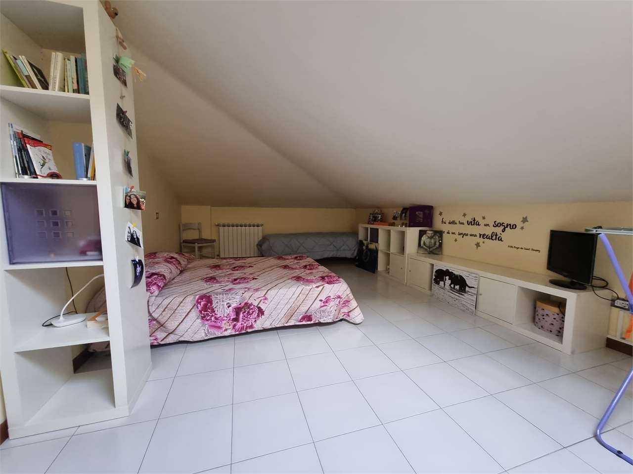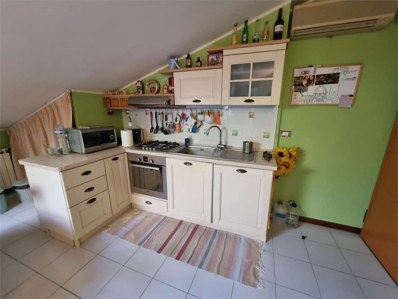Appartamento mansardato di circa 50 mq , al piano secondo ed ultimo , senza ascensore, in una posizione tranquilla e defilata ma a pochi passi dai principali servizi.l'immobile si compone di ingresso su soggiorno con angolo cottura e ripostiglio, camera matrimoniale e bagno con doccia.comprensivo di ampio garage di circa 18 mq e posto auto fronte garage.si vende anche completamente arredata. ottimo affare anche uso investimento energetica: g 175 kwh/m2 a