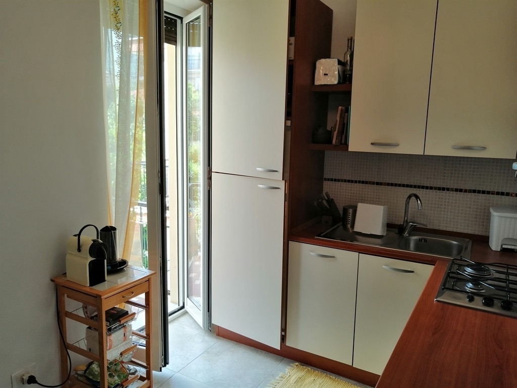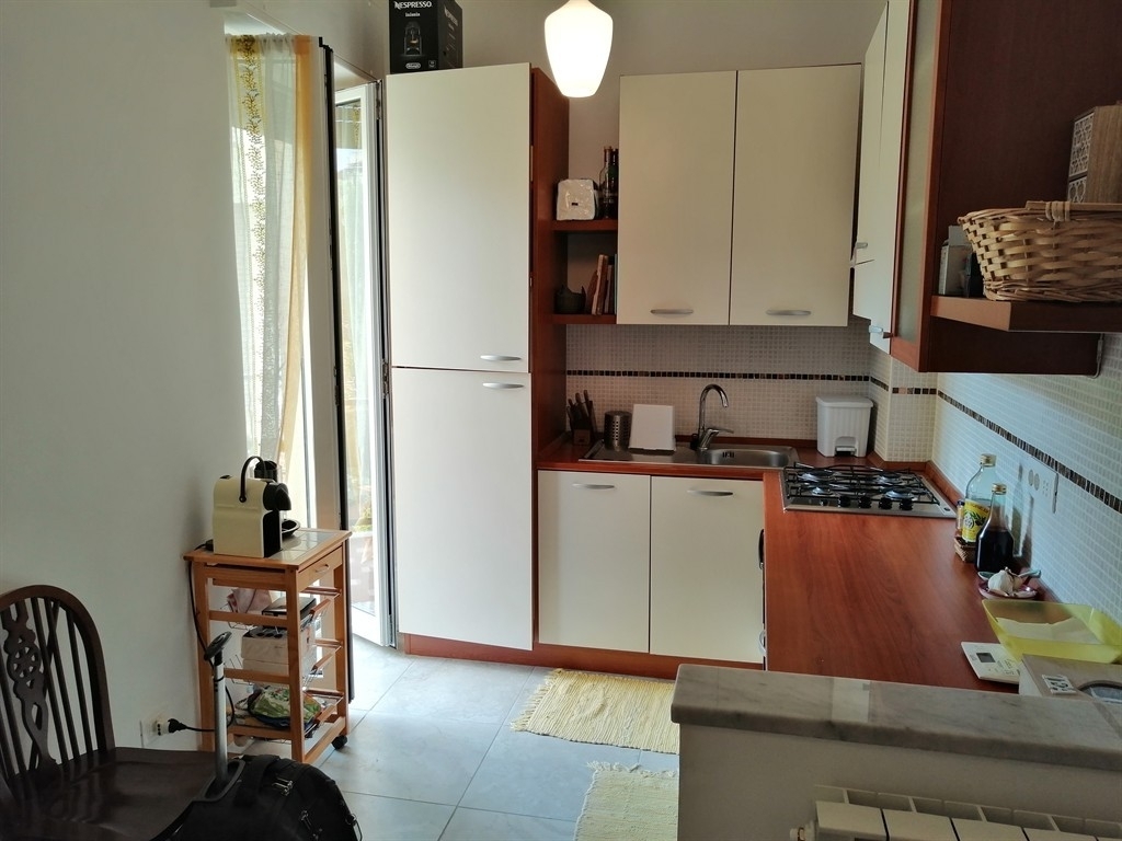 In piccolo stabile al primo piano con ascensore, appartamento ristrutturato con impianti, pavimenti e infissi nuovi, composto da soggiorno con angolo cottura, due camere matrimoniali, bagno finestrato, due balconi e ripostiglio. Possibilità di avere in affitto box auto poco distante. Ideale come casa vacanza, poco distante dal mare e comoda a tutti i servizi.