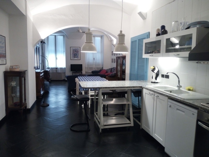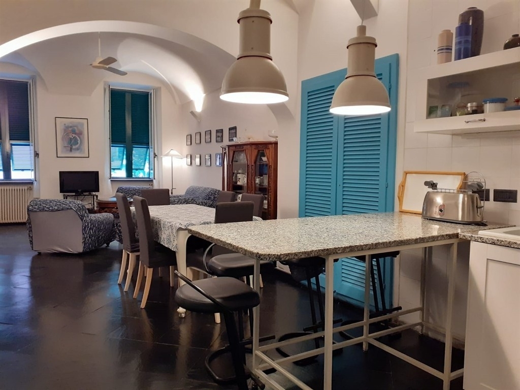 Nella centralissima piazza matteotti, crocevia del prestigioso budello di alassio, a pochissimi metri dal molo e dalle splendide spiagge centrali, riviera services immobiliare è lieta di proporre questo unico ed ampio trilocale situato al primo piano di uno stabile d'epoca, le cui grandi finestre si affacciano direttamente sulla piazza.l'appartamento, termoautonomo, è composto da grande zona living, organizzata in salone e sala da pranzo con angolo cottura, una camera matrimoniale ed una quadrupla, un bagno con ampia vasca, un ripostiglio ed una veranda. possibilità di realizzare un secondo bagno.