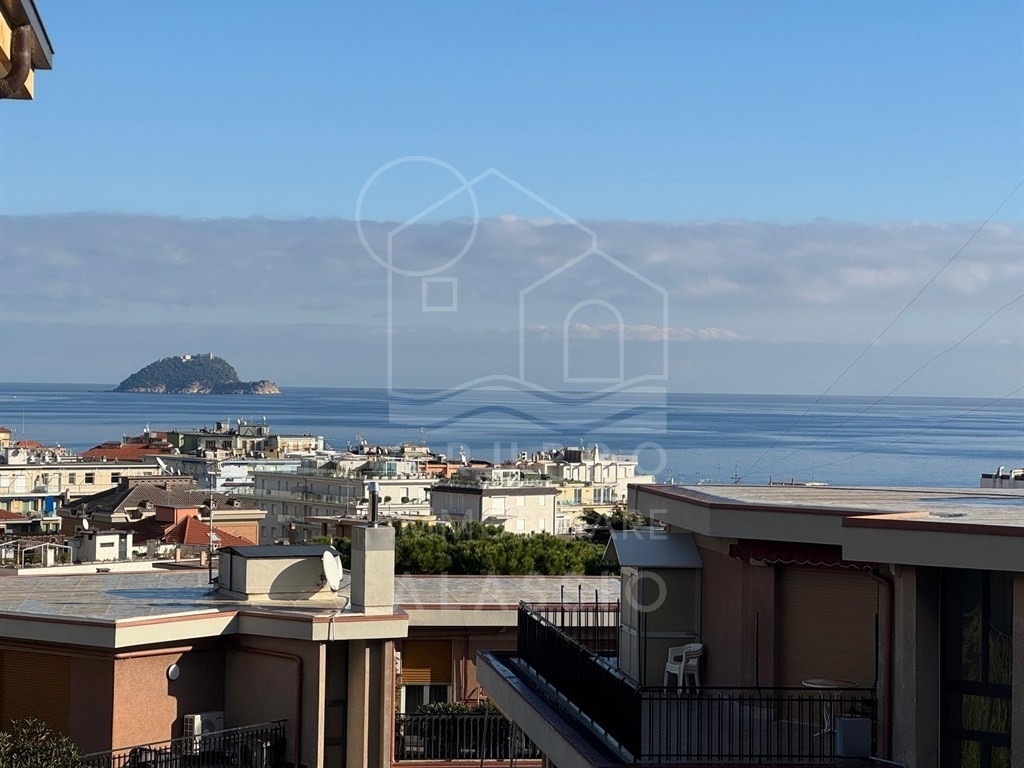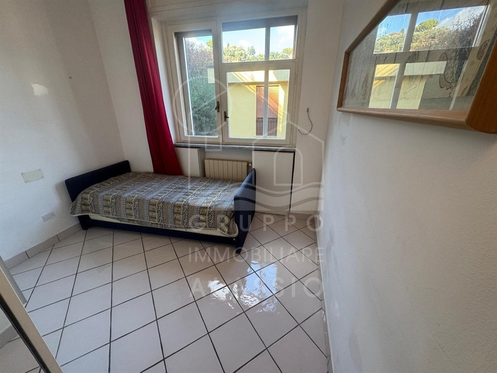 Alassio, zona comoda al mare trilocale ristrutturato, piano alto con ascensore composto da soggiorno con angolo cottura, camera matrimoniale, cameretta 2 bagni, balcone vista mare.