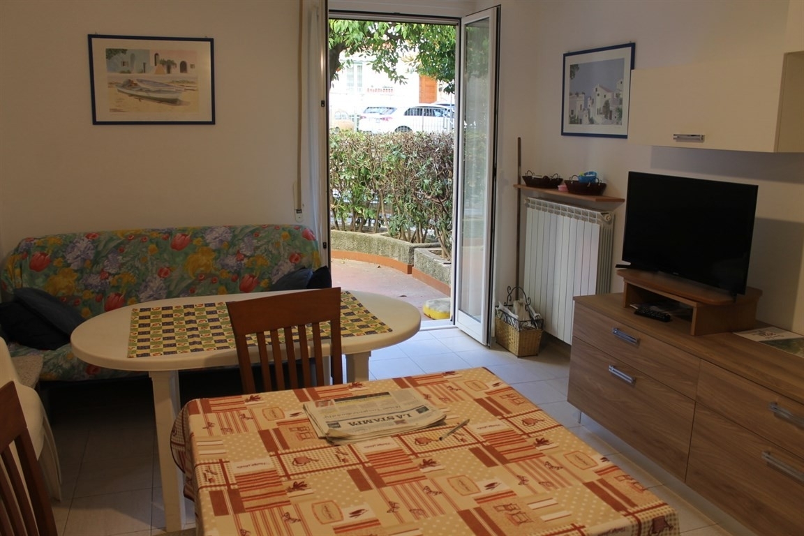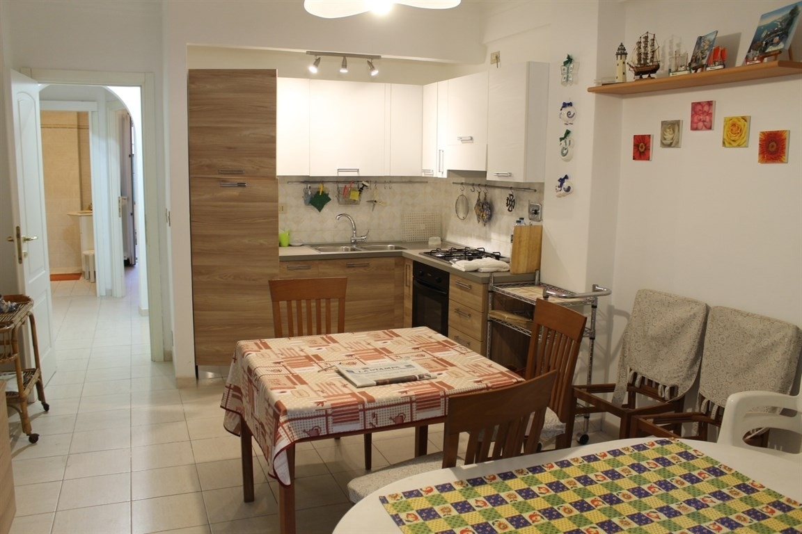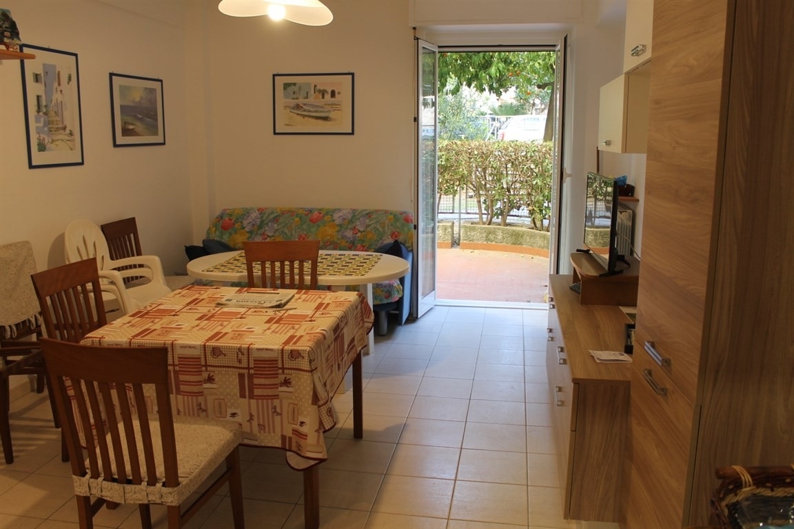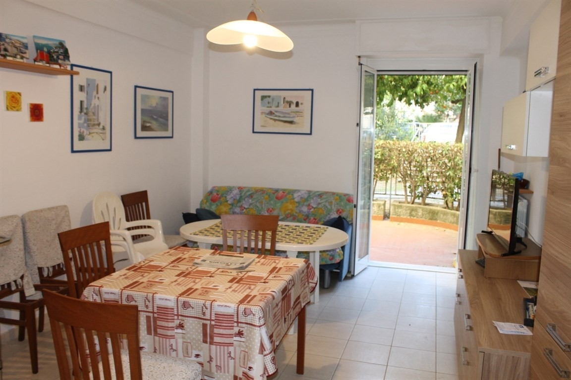 A pochi passi dal mare trilocale con 2 spazi esterni, composto da soggiorno angolo cottura, 2 camere, bagno e ripostiglio.